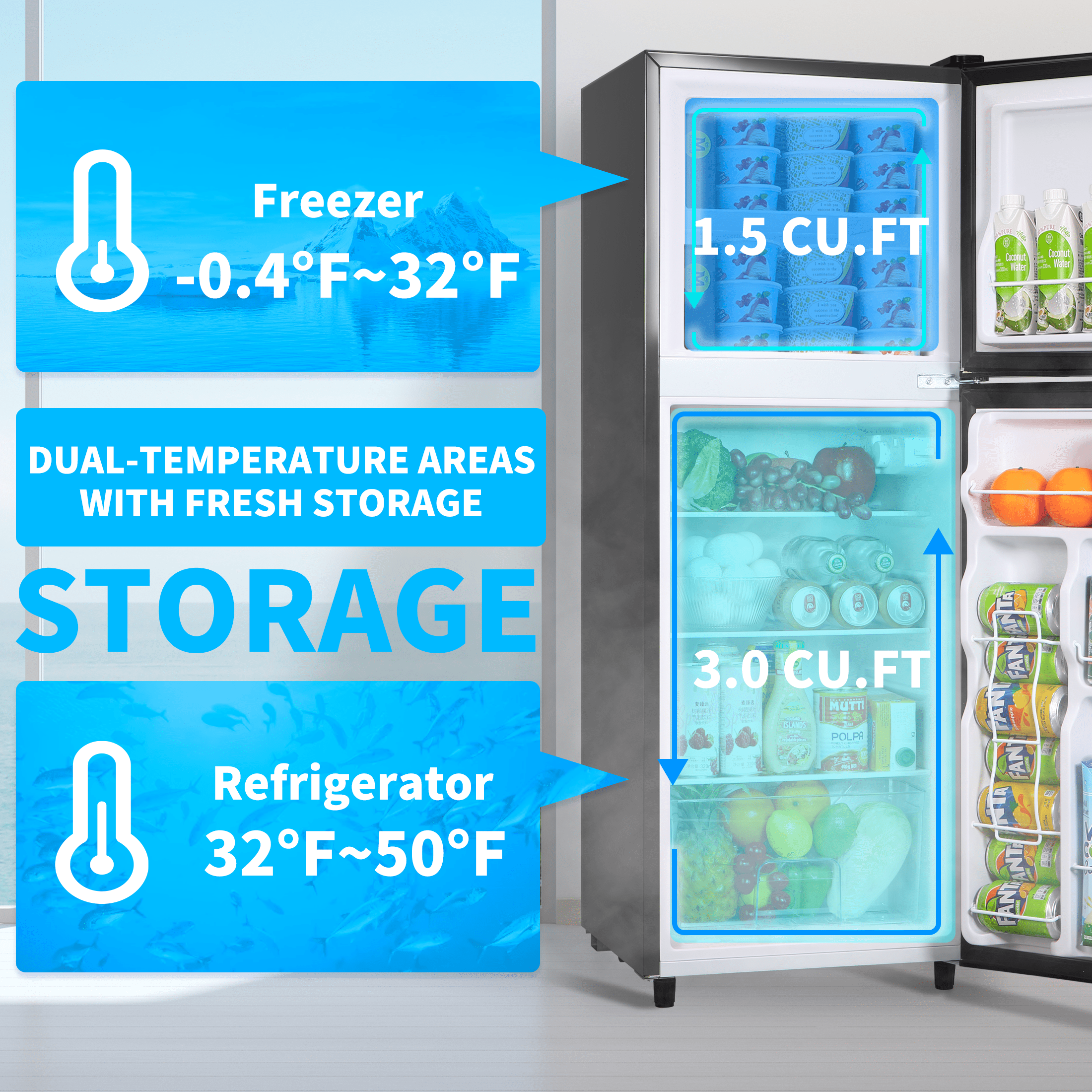 Freezer: -0.4°F-32°F (ice cream ready)