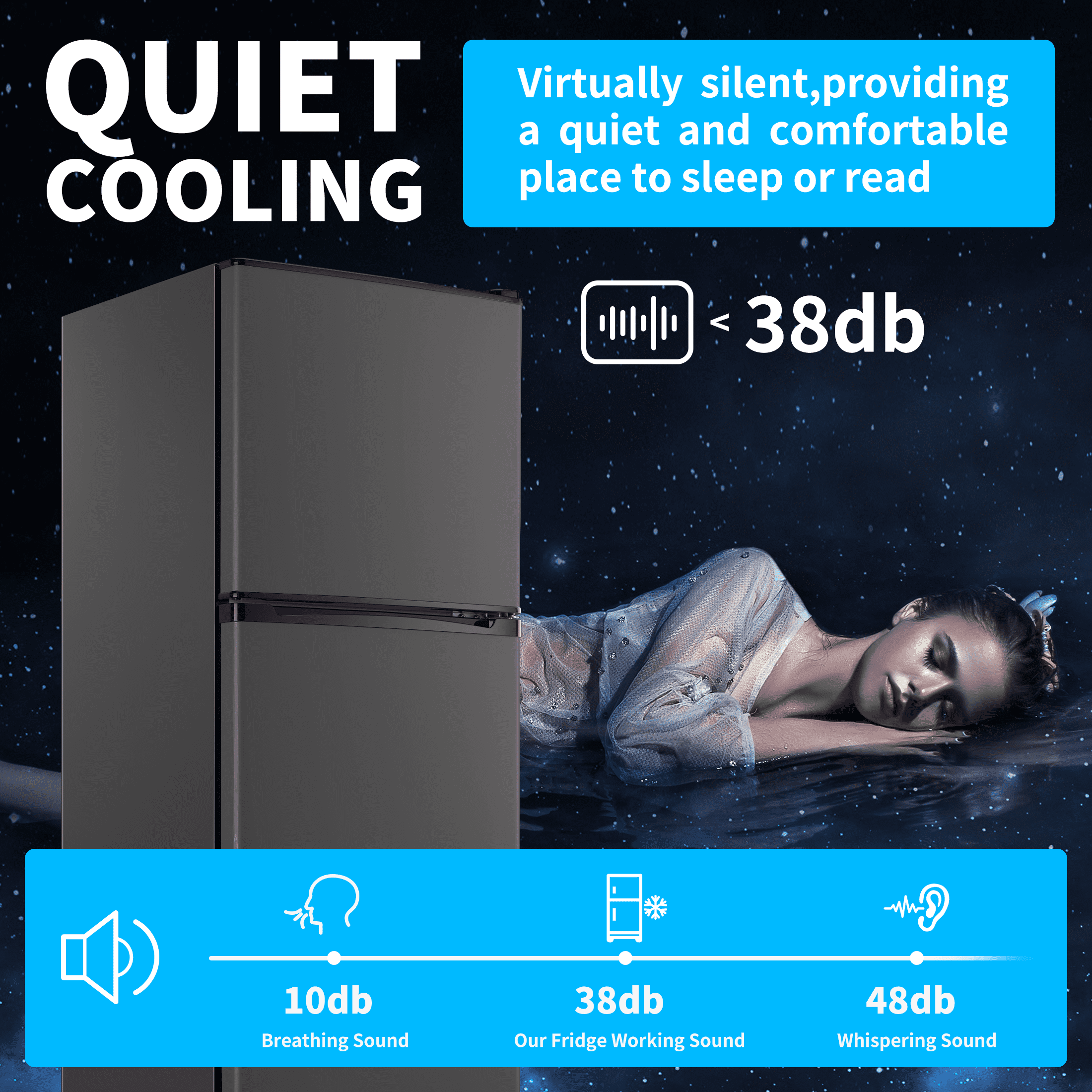 - ✔REFINED 7-LEVEL TEMPERATURE CONTROL: Our mini fridge with freezer harnesses advanced 3D refrigeration technology, boasting 7 precise temperature settings for unparalleled versatility. You can fine-tune the fridge’s temperature within a range of -11.2 °F to 50°F, selecting from 7 manual settings to perfectly suit your needs. This meticulous temperature adjustment allows for customized cooling of your bedroom mini fridge. Additionally, the fridge is powered by a robust compressor that runs smoothly and quietly, preserving a serene atmosphere in your space.
