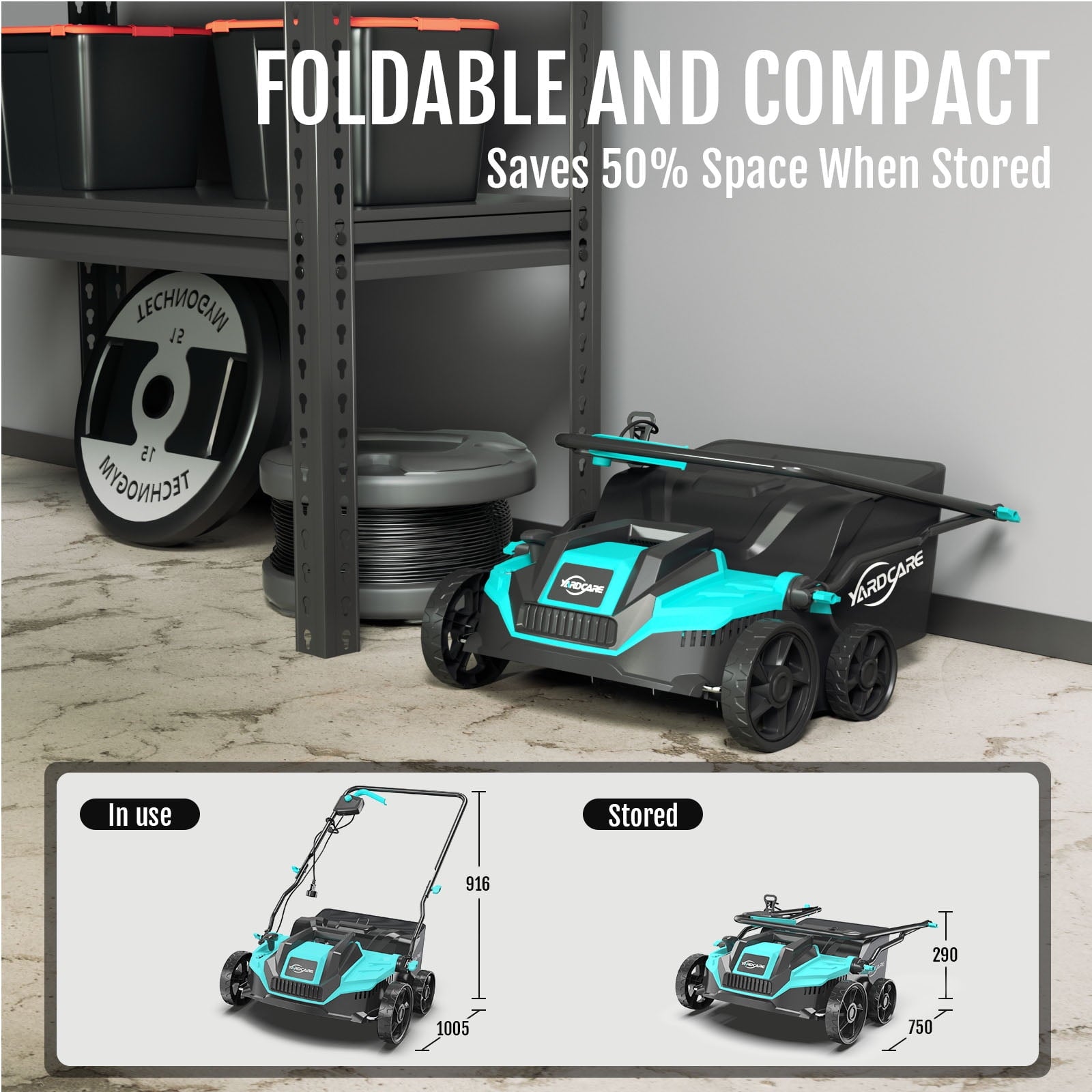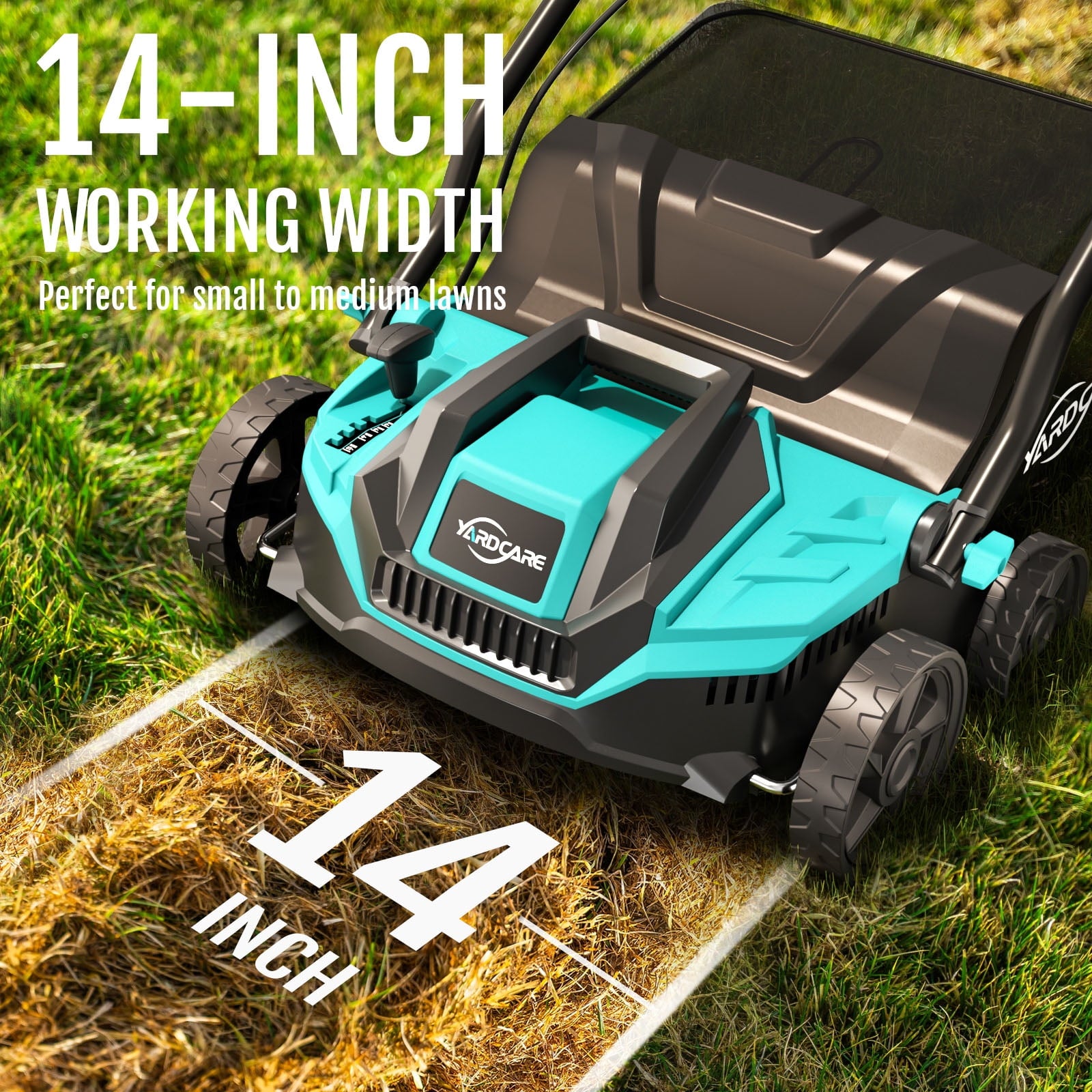 - Stable & Easy to Maneuver – Designed for real-world yard conditions, the machine features durable, puncture-resistant wheels—7″ in the front and 5.5″ in the rear—for smooth movement across bumpy, uneven, or sloped terrain. The balanced design ensures excellent control around flowerbeds, lawn edges, and tight corners, making it suitable even for less experienced users.