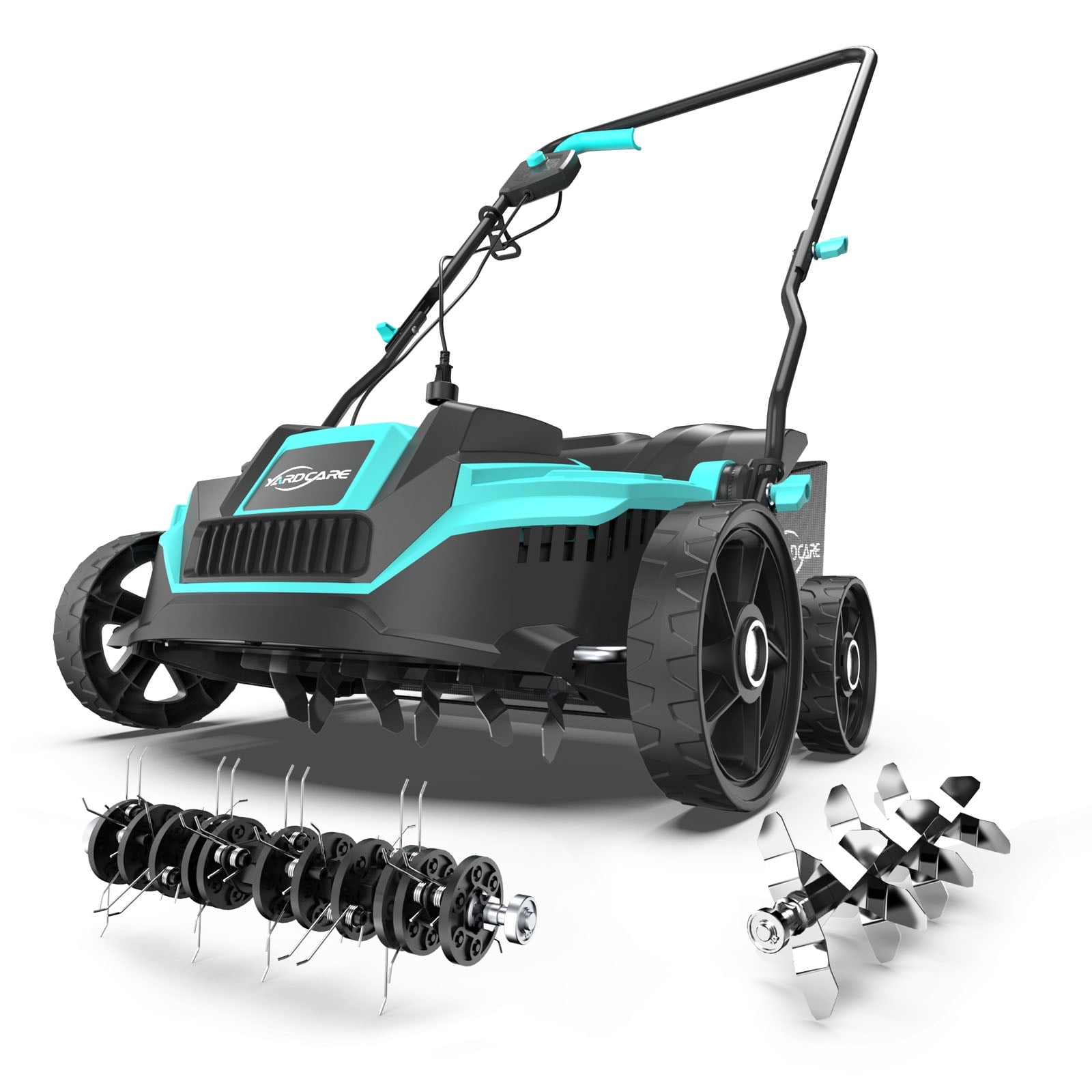 - 2-in-1 Dethatcher & Scarifier – Quickly switch between the included dethatching and scarifying drums to address different lawn needs. Use the scarifier to loosen compacted soil and improve water and nutrient absorption, while the dethatcher gently lifts layers of thatch and debris. This 2-in-1 system promotes stronger root development and supports a thick, healthy-looking lawn year-round.