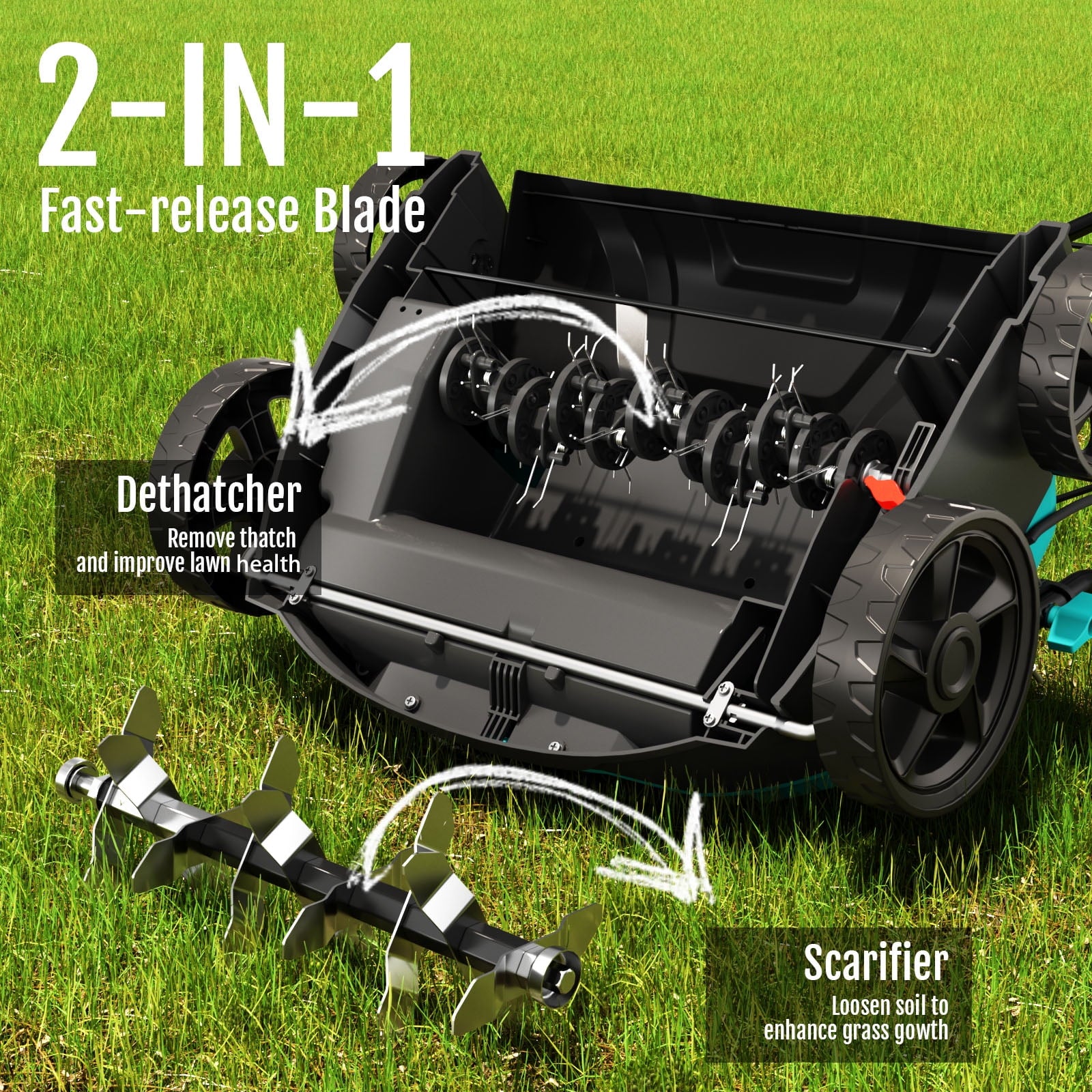 2-in-1 Dethatching and Scarifying Function