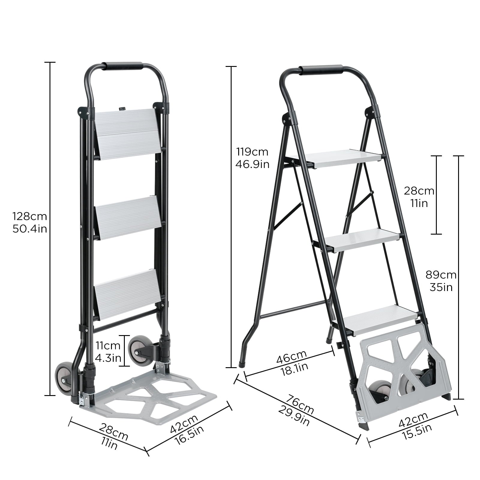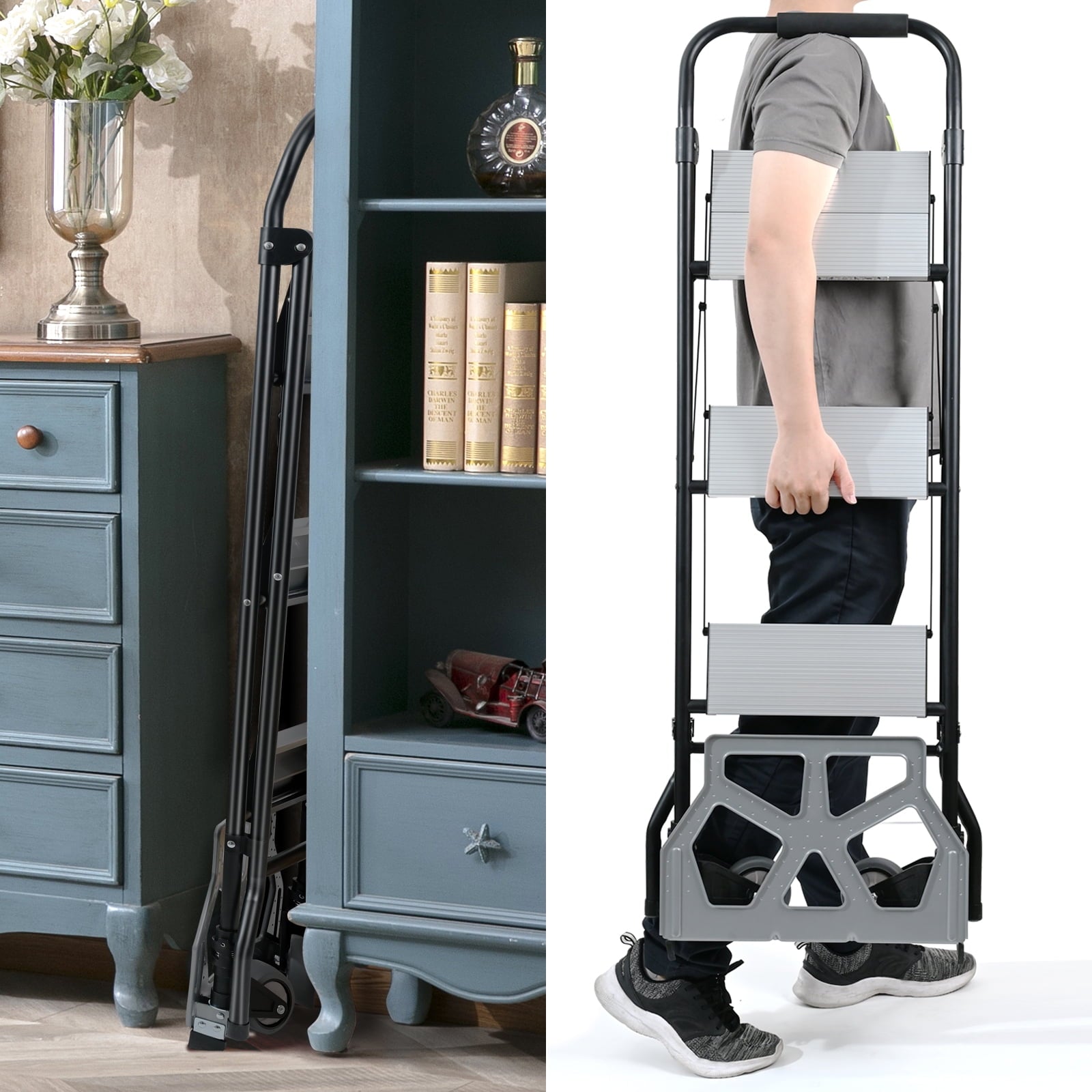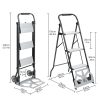 Home Ladders 2 in 1 Step Ladder & Hand Truck,Aluminum 3 Step Stool,Folding Ladder with Anti-Slip Pedal,Heavy Duty Dolly Cart, Utility Platform Cart with Wheels