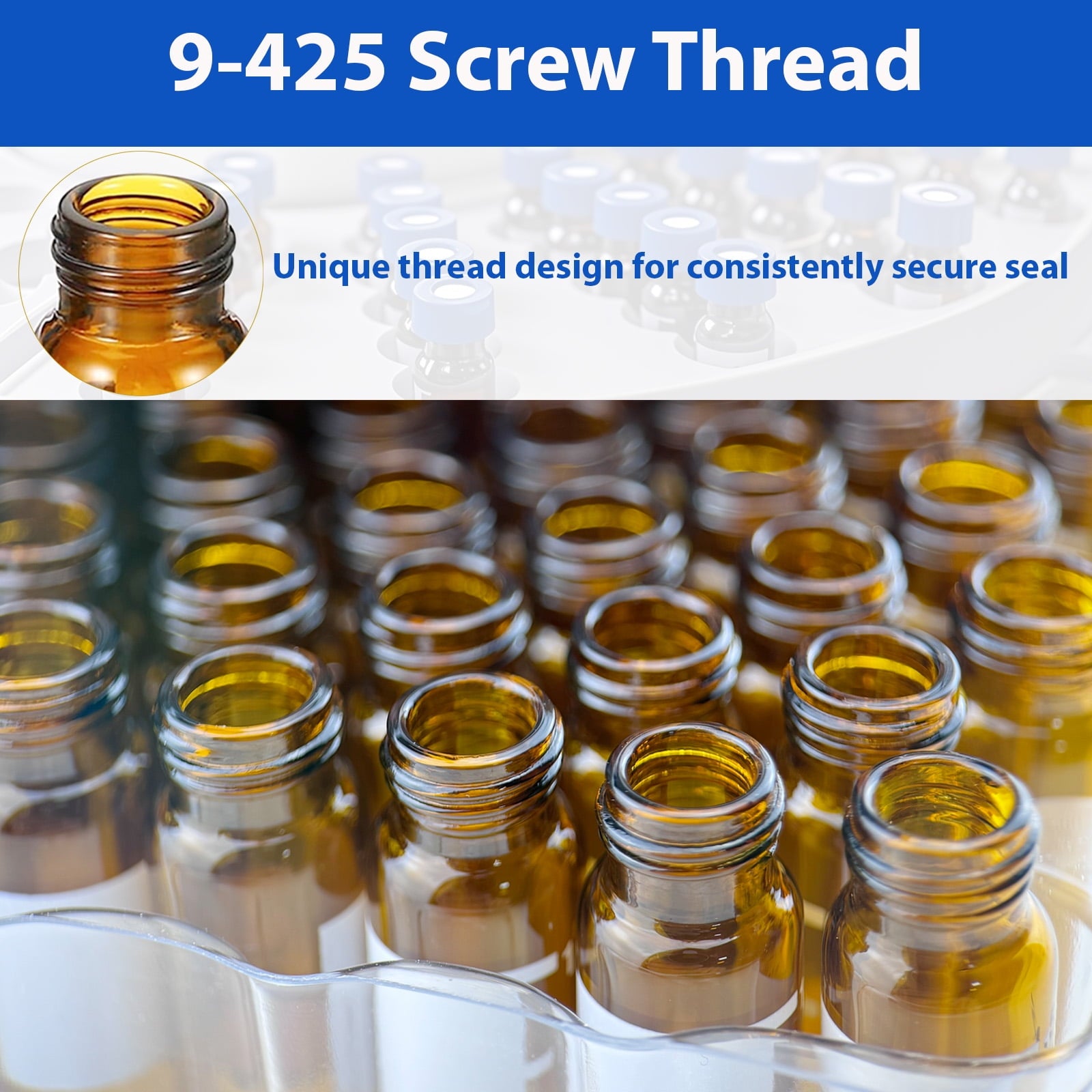 - 【Leak-Proof Seal for Secure Storage】: 9-425 thread design with PTFE/silicone septum ensures airtight sealing. Suitable for empty vials for injection, bottle containers for liquid, and lab samples.
