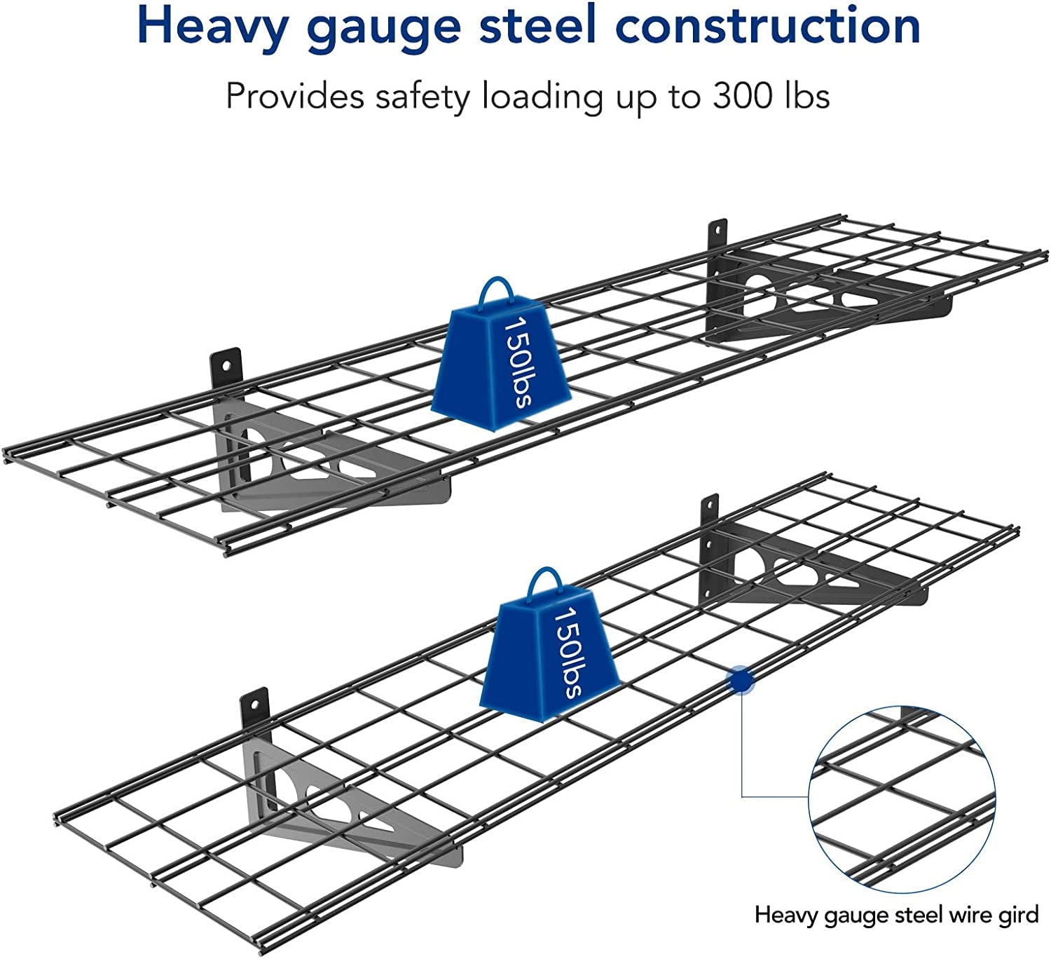 • High Load Capacity: Heavy gauge steel construction provides safety loading up to 300 lbs total.