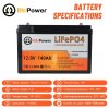 【Built-in 100A BMS】12v 140ah lithium battery with 100A battery protection board, can prevent overcharge, overdischarge, overcurrent, short circuit and overtemperature, provide you with strong and stable power supply, with excellent self-discharge rate, 12v lithium Batteries are safer than lead-acid batteries.