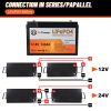 【Safety to Use】Made of extremely safe and stable lithium iron phosphate battery, our 12v 100ah lithium battery has higher energy density characteristics and will not catch fire. All 12v 100ah batteries are CE and SGS certified for extra long life, unlimited installation capacity and more cost-effective.