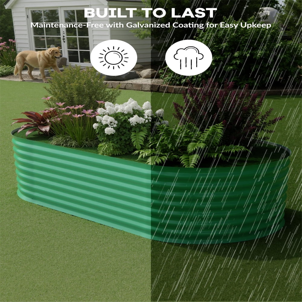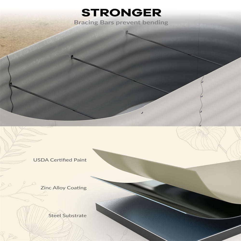 - All-Climate Galvanized Steel Crafted with 0.6mm thick zinc-aluminum coated steel (3x rust resistance vs standard galvanized), this bed withstands coastal salt, acidic soils, and freeze-thaw cycles. Non-toxic for organic gardening – ideal for tomatoes, strawberries, or roses.