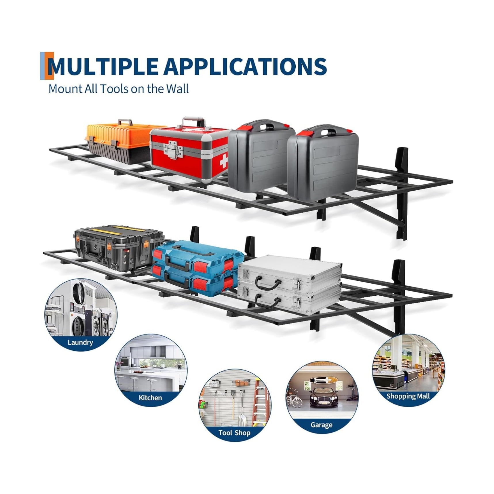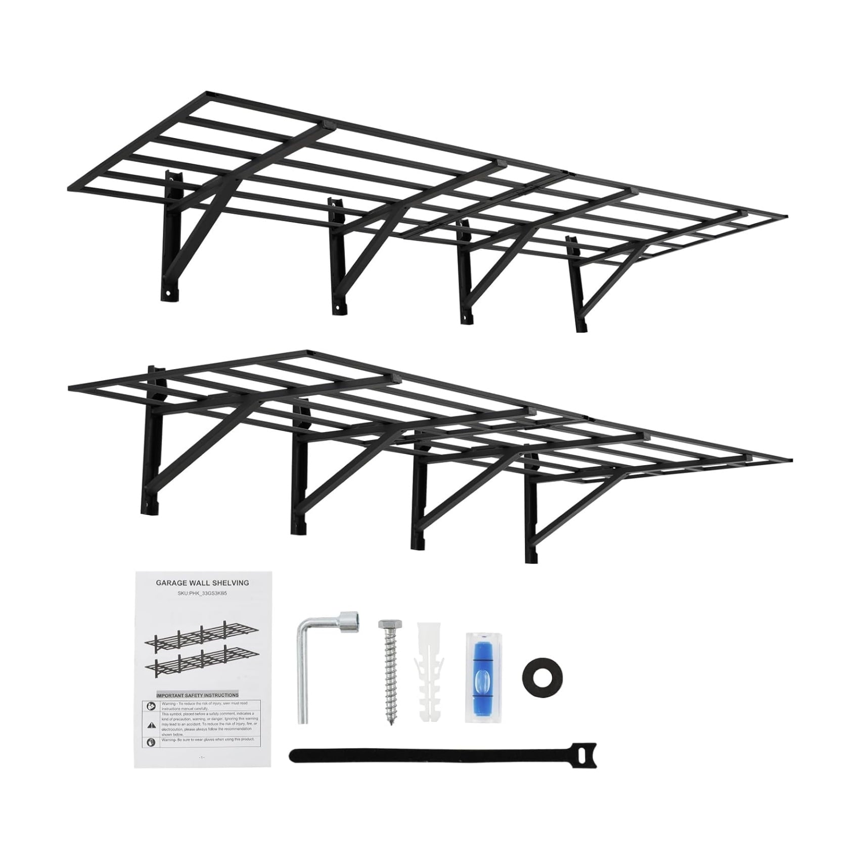 - 1,600 lb load bearing: The garage storage shelf measures 72.05 x 24.8 x 12.01 inches (W x D x H) with a 0.5 foot arc height. Heavy-duty powder-coated steel garage storage racks are set to provide high-quality hardware for each component. It depends on the load bearing capacity of the wall and the installation environment. The maximum load is 800 pounds per piece, and if mounted on a wall post, measure the distance before buying.