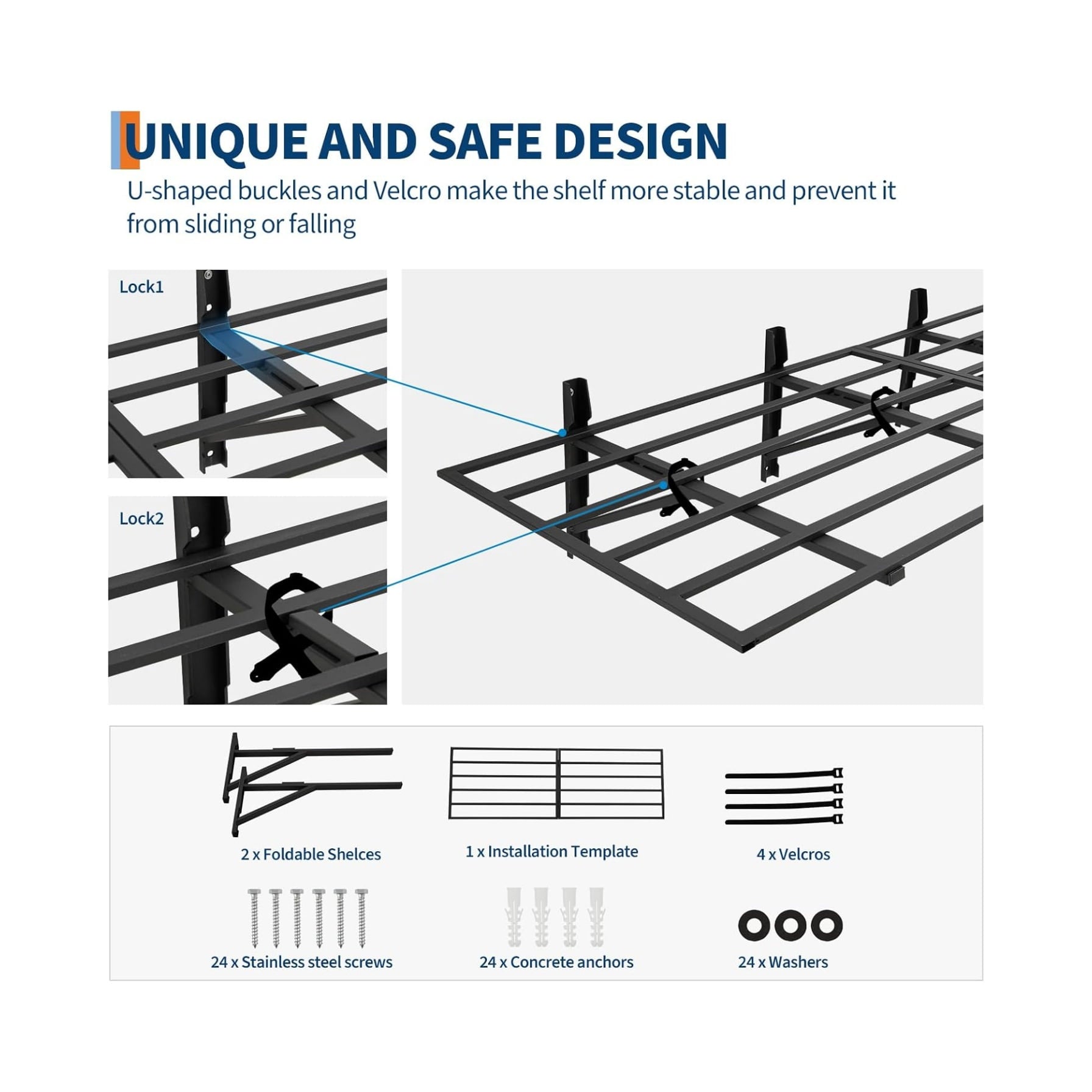 - Quality assurance: The shelves are designed with Velcros to prevent brackets from falling or bending, and all hardware is rigorously tested for durability and stability.