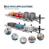 - Space-saving foldability: The overall foldable design allows for easy storage when not in use, providing plenty of space for your garage or storage area. With its understated stand design and the ability to mount side by side or stacked, this 2-pack shelving unit offers a versatile storage solution for garages, small pantries or kitchens.
