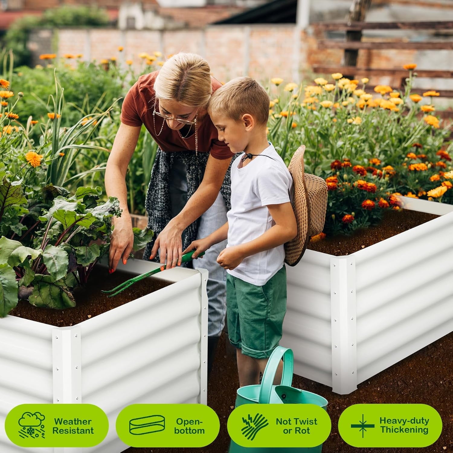 • The outdoor elevated flower bed is made of durable galvanized metal, which is not easy to wear and tear, has strong weather resistance and durability, and has a long service life.