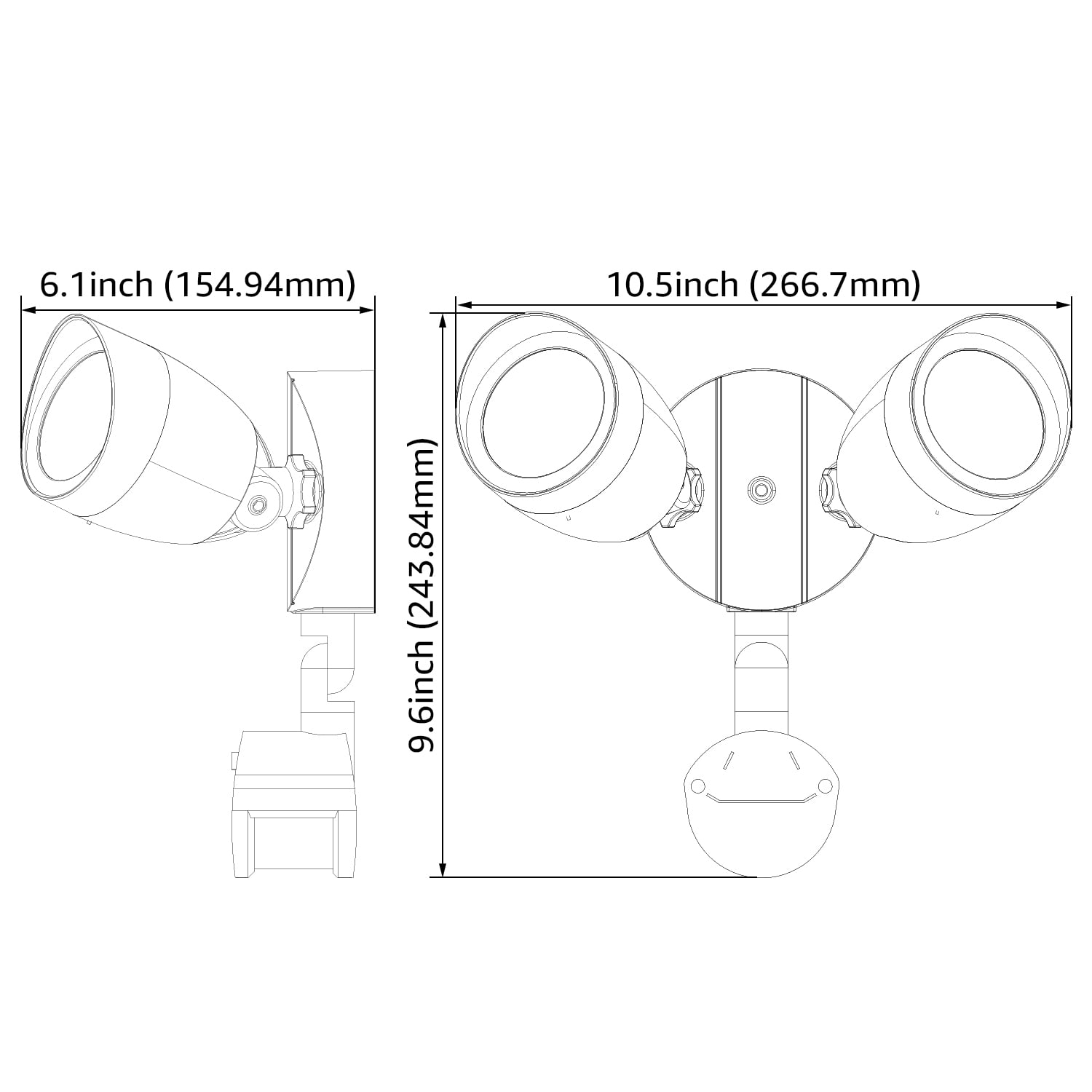 2 Pack 20W Motion Activated LED Outdoor Security Light, Dual Head Exterior Flood Light, 5000K Daylight, White