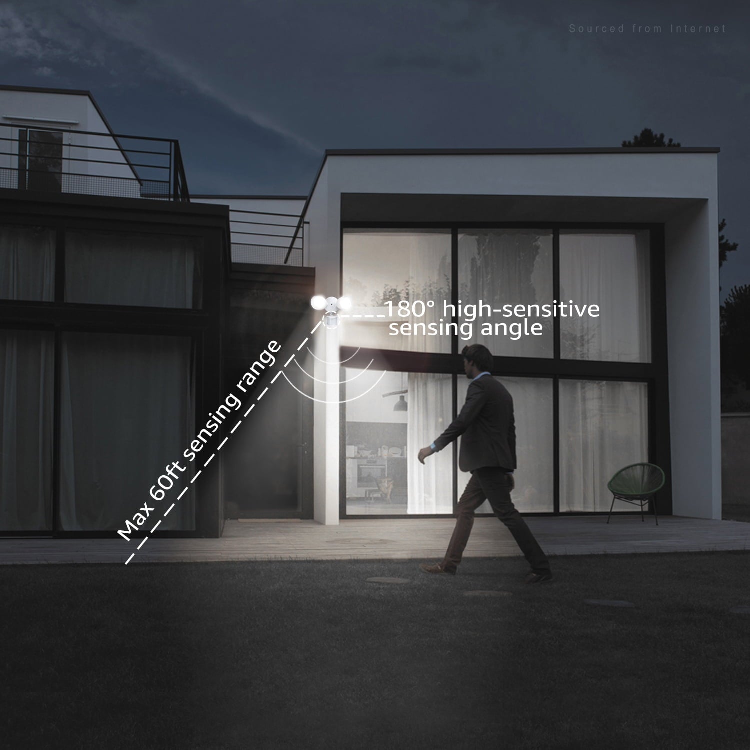 -180° wide sensing angle and maximum 60ft detection range. Brings you an excellent illumination solution.