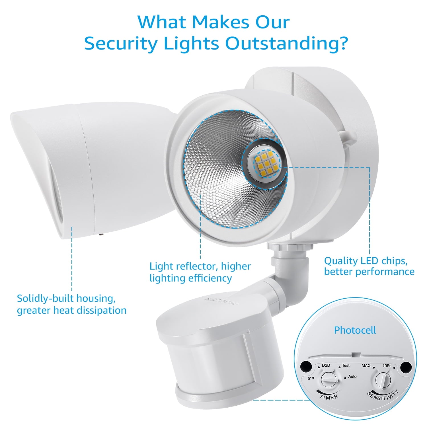 Home Flood & Security Lights 2 Pack 20W Motion Activated LED Outdoor Security Light, Dual Head Exterior Flood Light, 5000K Daylight, White