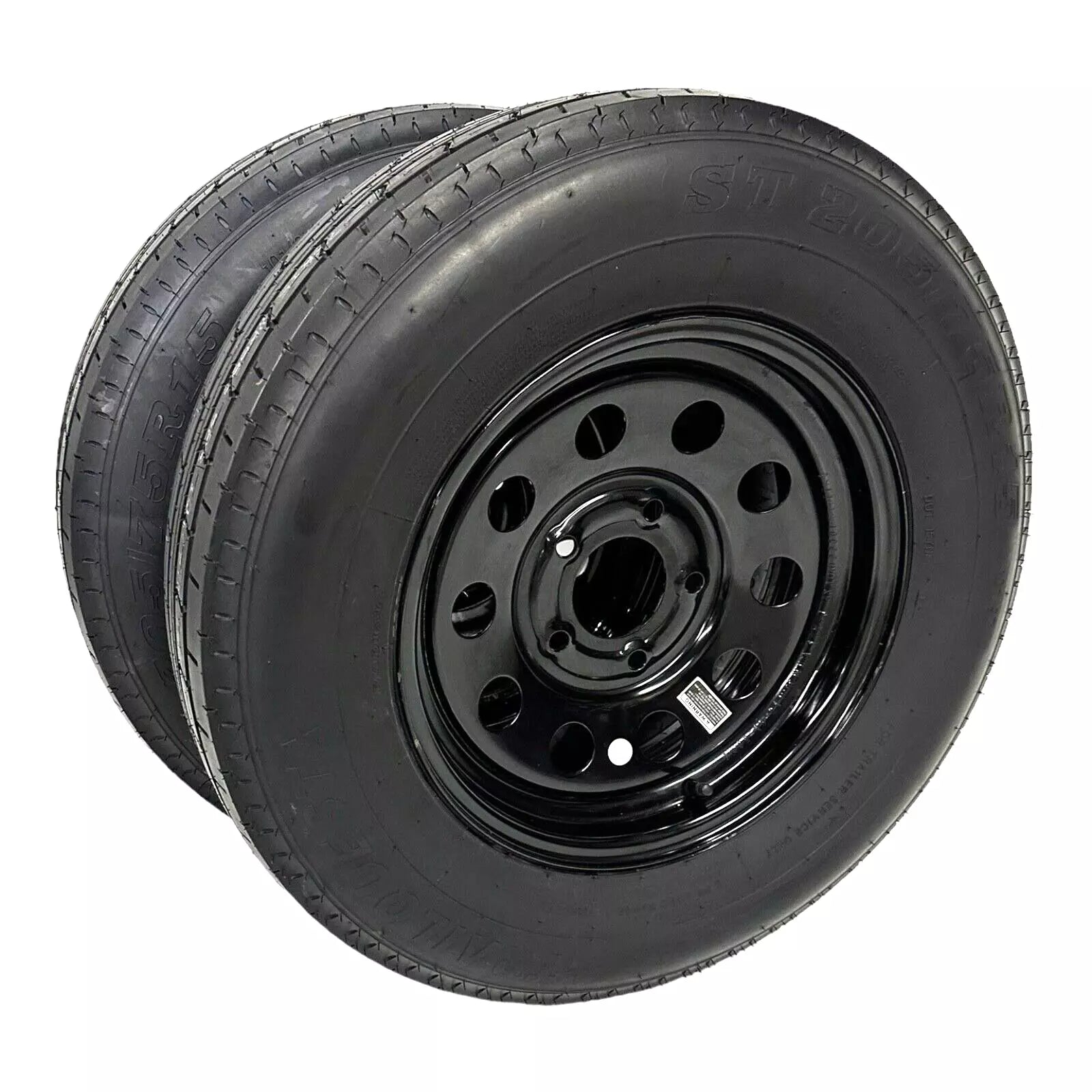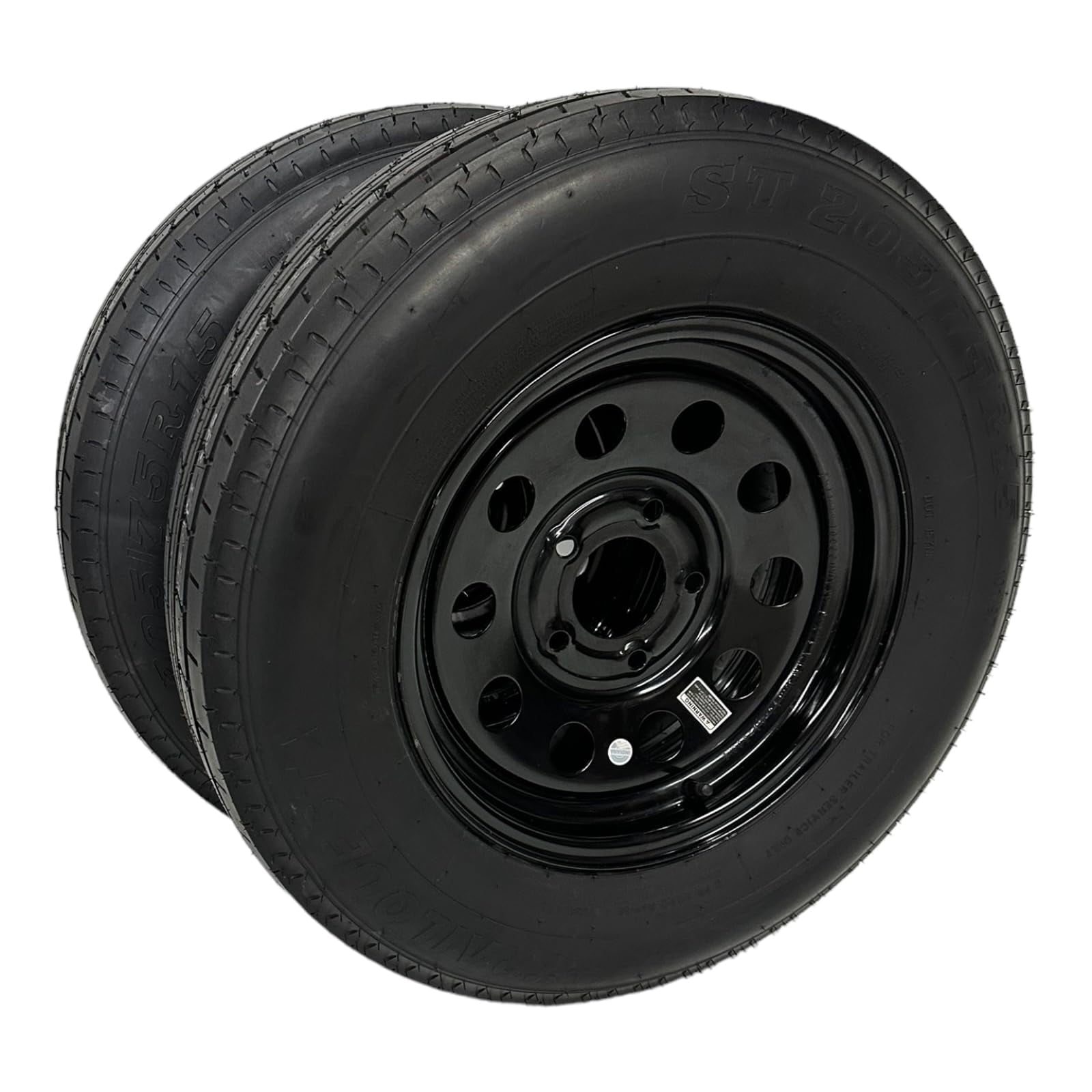 Pre-Mounted ST205/75R15 Radial Trailer Tire on Rim – 15″ Black Modular Style Wheel with a 5 Lug on 4.5″ Center Bolt Pattern. Tire is Load Range C, 6 Ply Radial, with Max Load of 1820 pounds and Max Pressure of 50 PSI. Aspect Ratio 75, Section Width 205, and Rim Diameter 15 Inches. Speeding Rating M with Load Index 101. Tread Depth 7.8/32nds. Center Bore 3.19″ and Offset “0” with Hub Stud Nut Requirement of 1/2-20 60 Degree Cone Nut. (note: some tires will have slight dip/indent on sidewall, called a splice, it occurs in manufacturing, this is not a defect in any way). Warranty Included Pack Quantity: 2 Assemblies