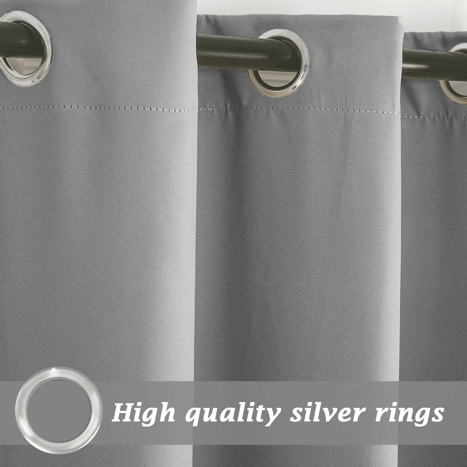 4. RUSTPROOF GROMMETS: Silver stainless steel grommets make the curtain luxury and upmarket. Although exposed to wind and rain, it will also display with the original look, durable and exquisite for its rustproof feature.