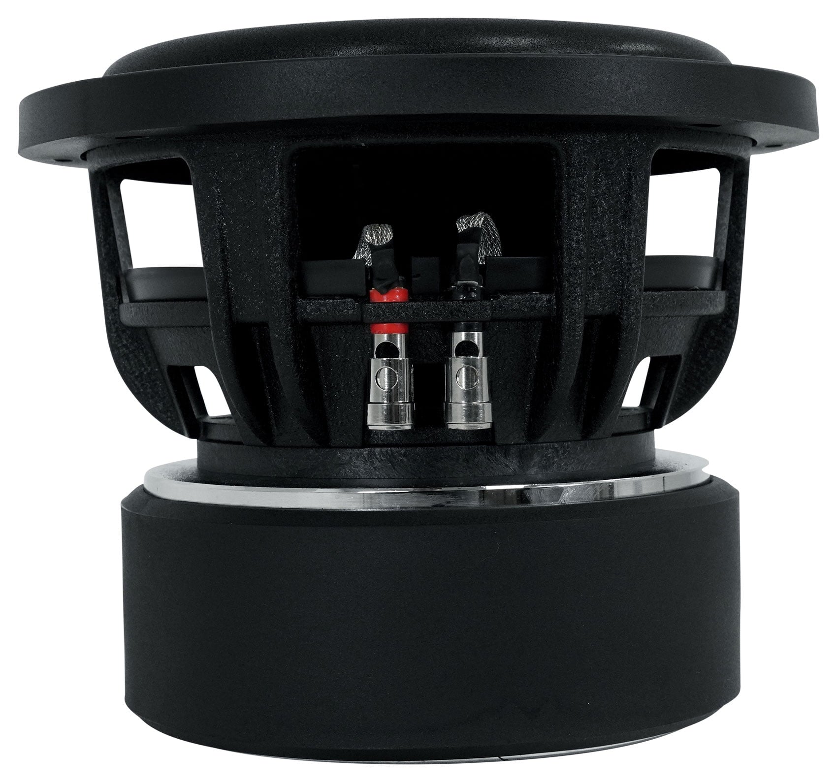 - Two Chrome-Plated Binding Post Terminals. Black Non-Pressed Paper Cone. Ultra-Stiff cone is extremely thick and strong. Thick Foam Surround Provides Incredible Sound Quality With Minimal Distortion. Black stitching reinforces the cone and ensures long life. New Ultra-stiff PolyPropylene (PP) Dustcap is 0.9mm thick (Extremely, thick, beefy, and stiff). Oversized aluminum heatsink ring keeps the voice coils cool by absorbing and dissipating heat.