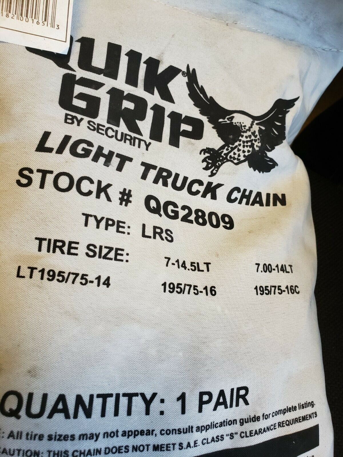2 Security Chain Co QG2809 Quik Grip V-Bar Light Truck LRS Tire Traction Chain