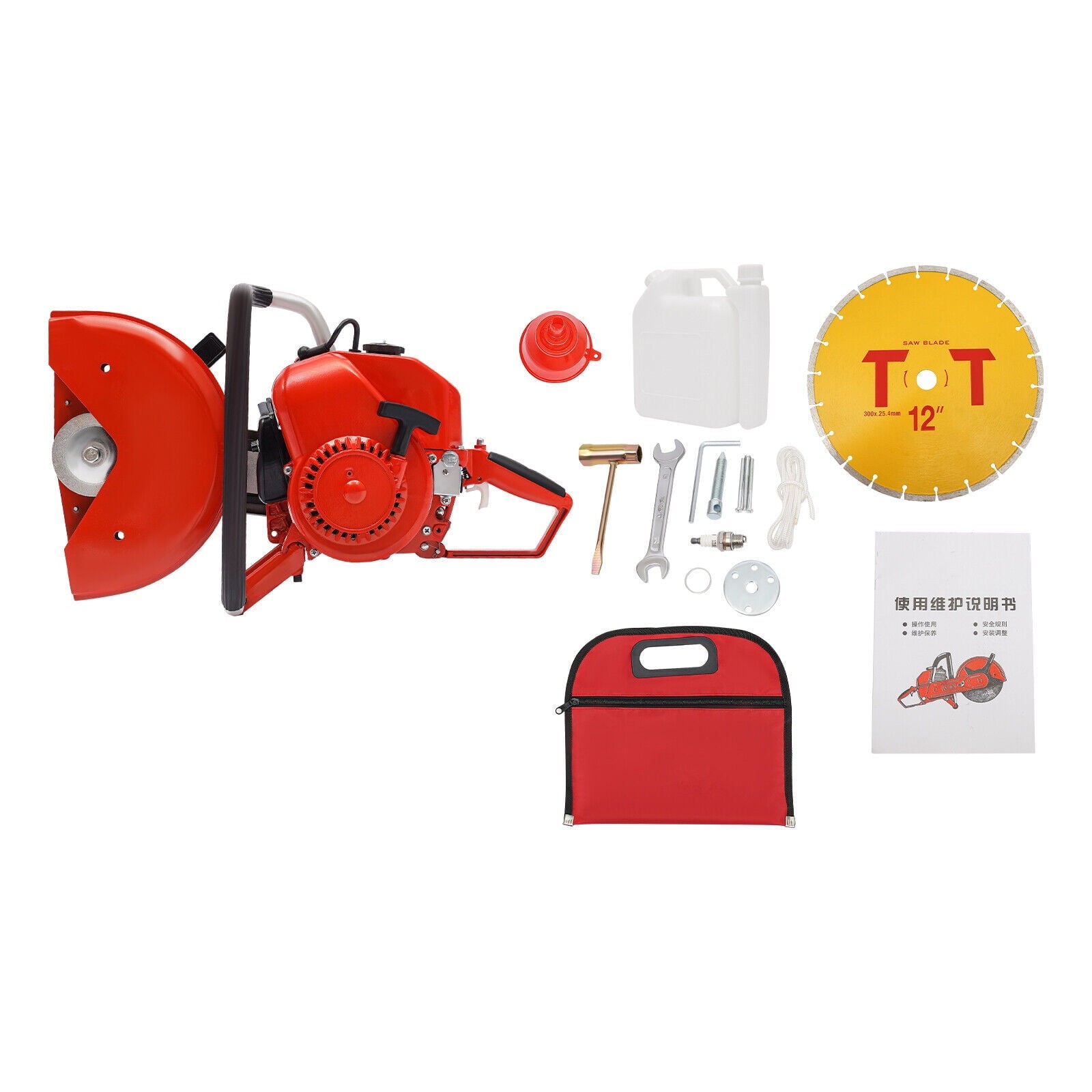 Home Power Saws 2 Stroke 78.5CC Gas Power Cement Concrete Cut off Saw Cutting Tool W/ Blade Red