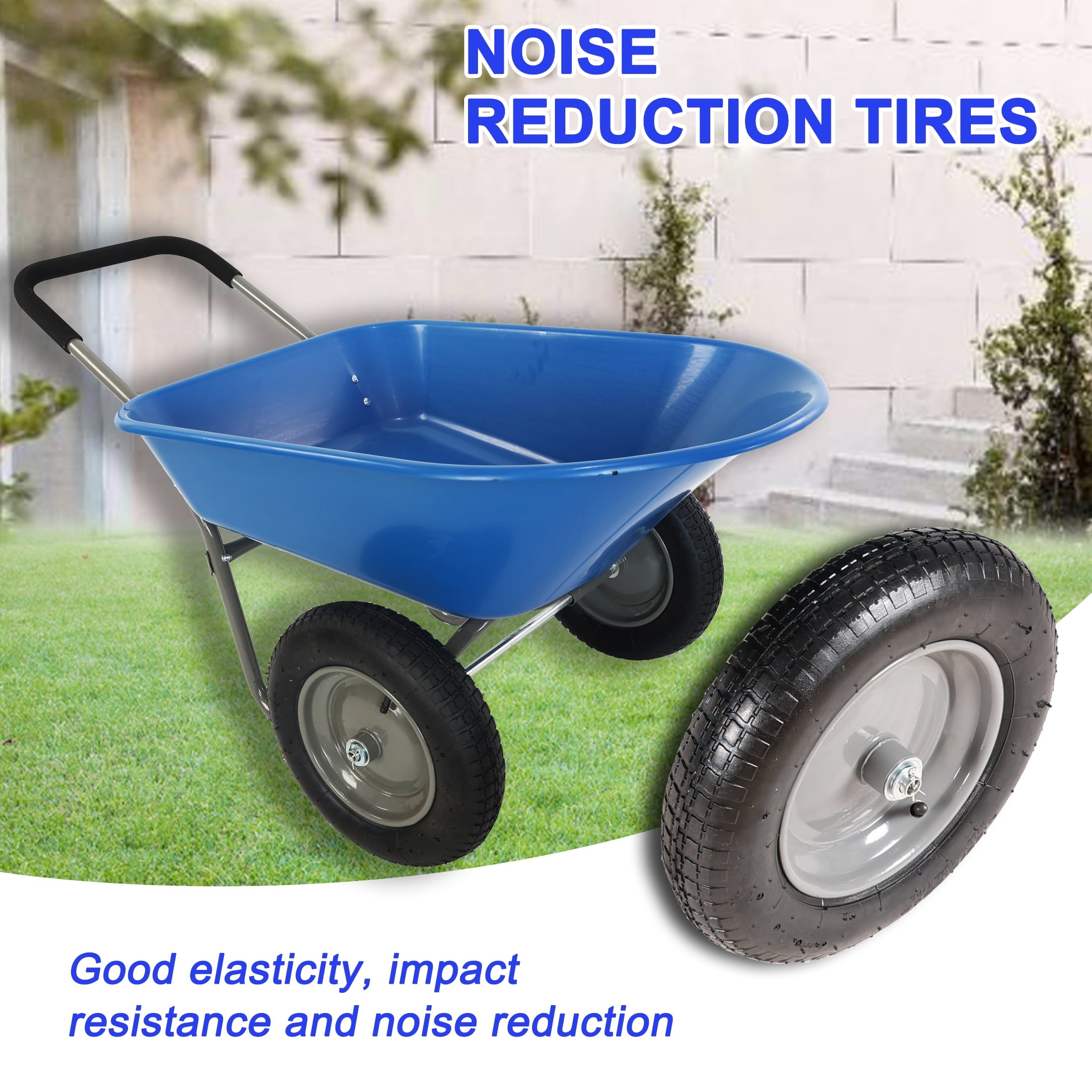 2- Wheeled Garden Wheelbarrow - 15" Pneumatic Wheels, 300 lb Capacity– Heavy Duty Construction for Transport