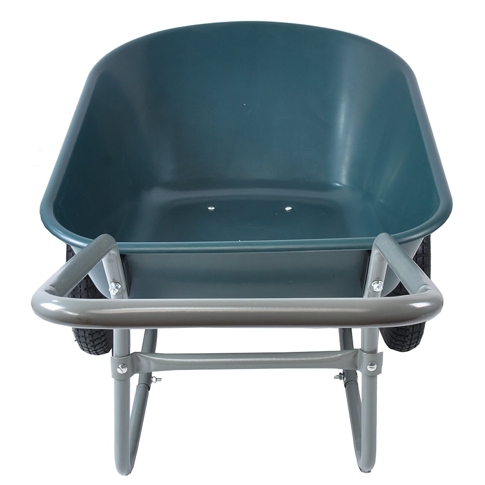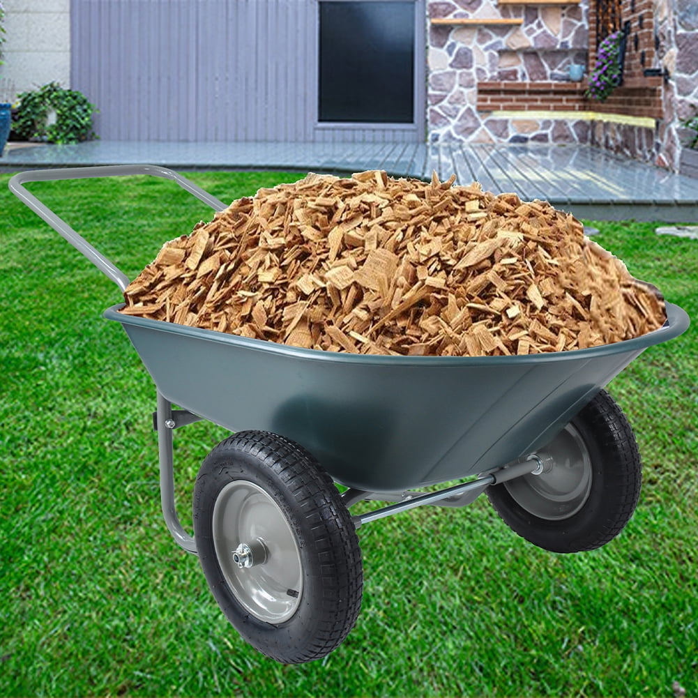 - [Equipped with Two 15-Inch Inflatable Wheels] This garden two-wheeler comes with two large 15-inch inflatable wheels, ensuring easier lifting and maneuvering of heavy objects. The rust-resistant polyethylene tray and smooth surface contribute to its lightweight and efficient design, providing optimal assistance to the garden.