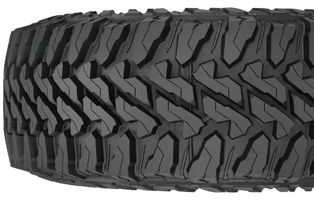 The Yokohama Geolandar M/T G003 is aggressive Mud-Terrain Tire designed for all types of pickups, SUV’s and 4×4’s the MT G003 features improvements in traction, treadlife ride comfort and more. It is available in a variety of sizes with ranges from 16-20 inches in both LT and flotation models. The Geolandar MT G003 features a high-density triple-polymer tread compound that goes with their shield construction that consists of multiple sidewall plies, steel belts, a full nylon cap, and a high turn-up carcass for added protection. Combined with a new aggressive sidewall armor, which increases sidewall proctection against jagged rocks and other debris and provides very good off-road traction as well.
