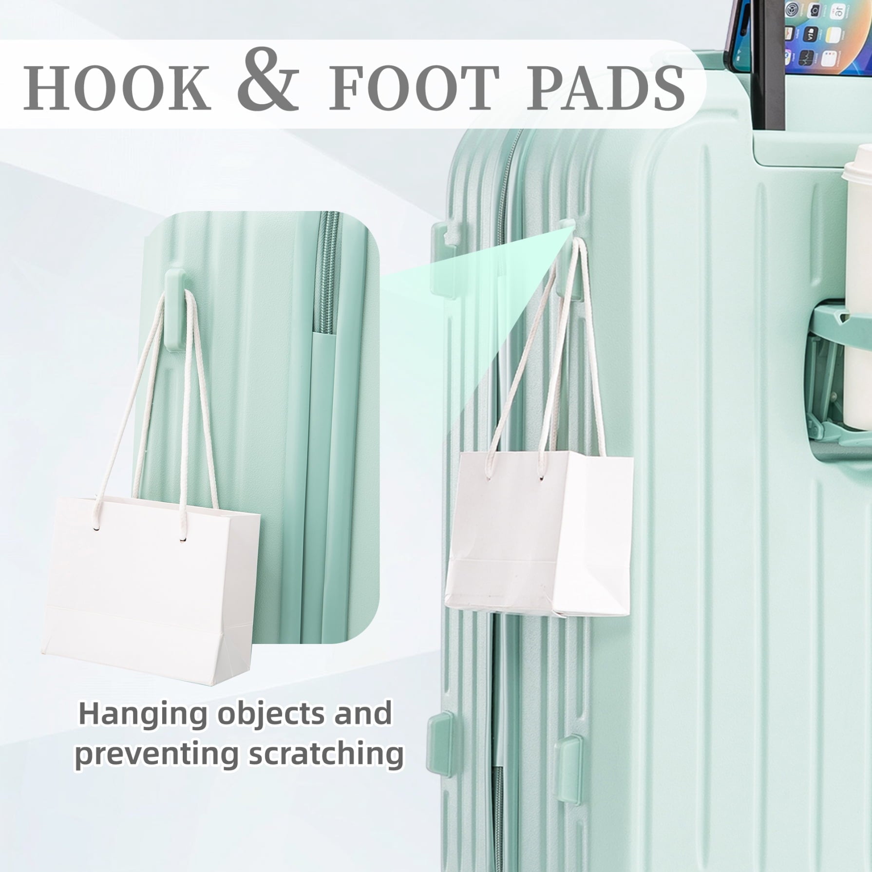 - Dual-purpose cup holder and handle hook organize drinks and bags simultaneously, freeing hands for tickets or passports – maintain convenience during rushed boarding processes or crowded travel hubs.