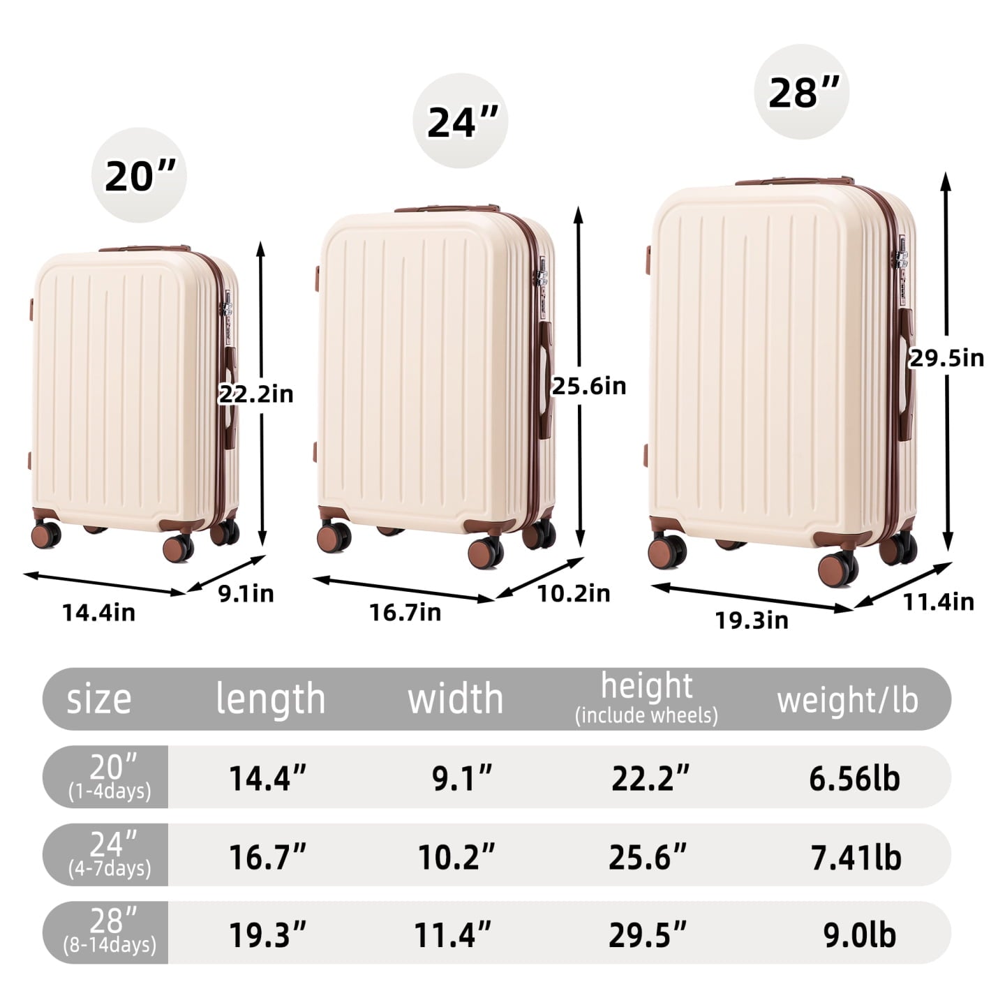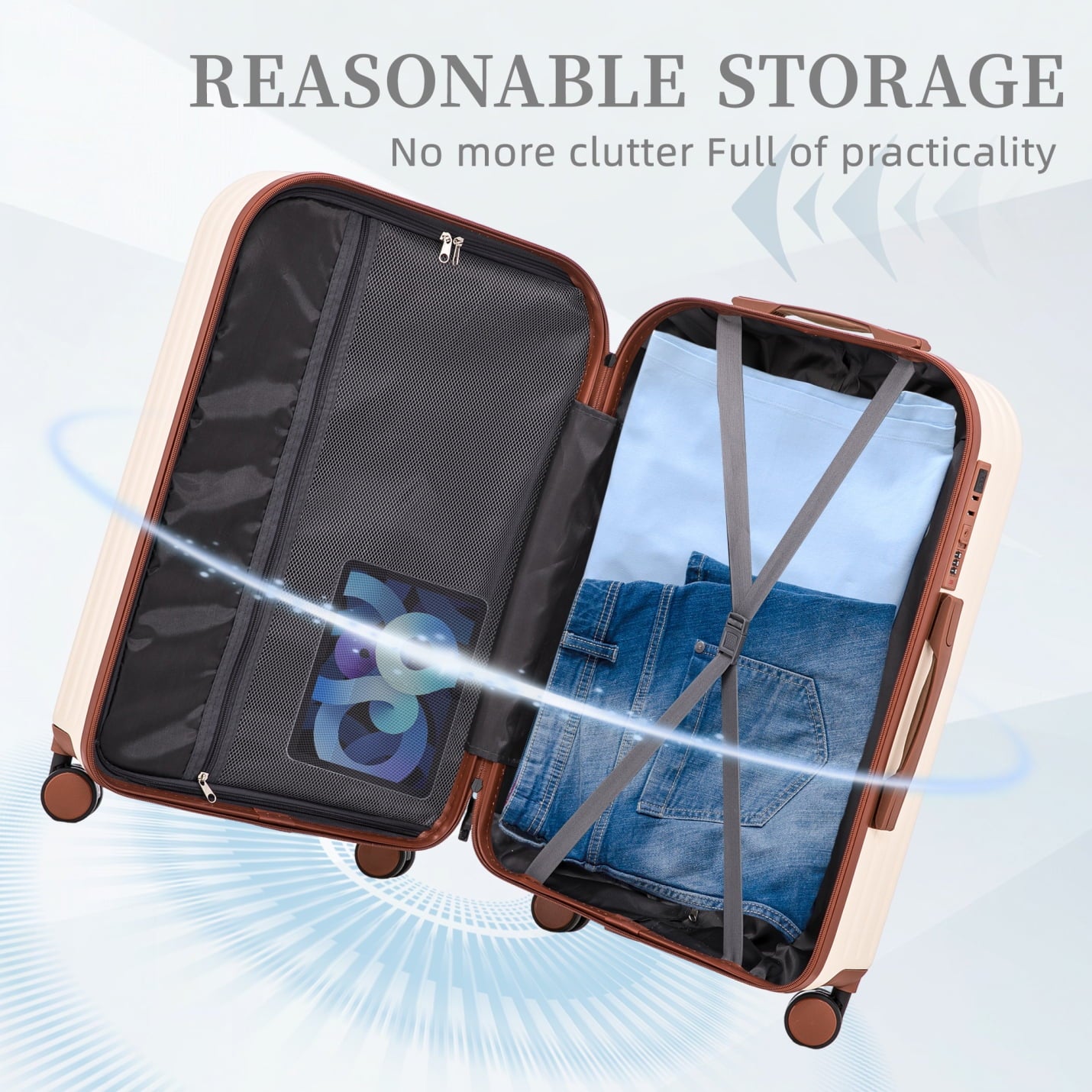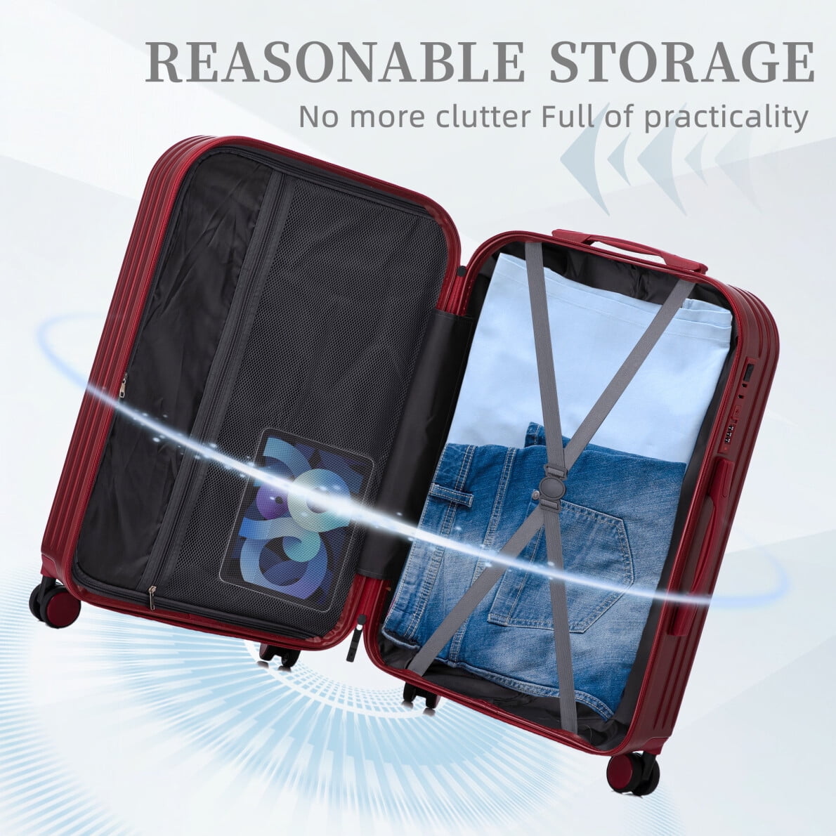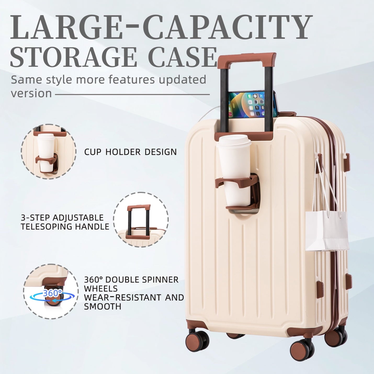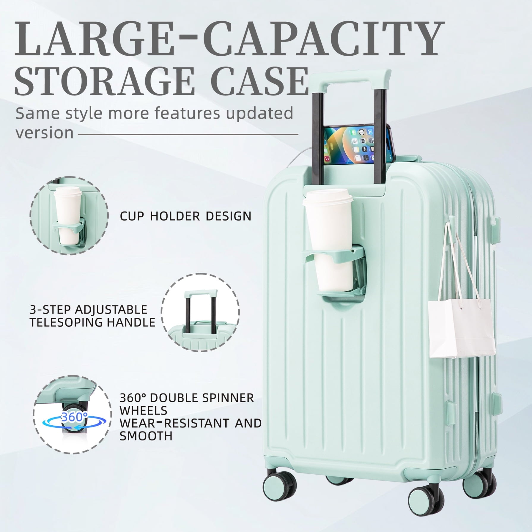 - 360-degree silent spinner wheels ensure effortless directional control across carpets and pavement, supported by reinforced side feet that prevent tipping – enjoy smooth transitions between transportation modes without wobbling.