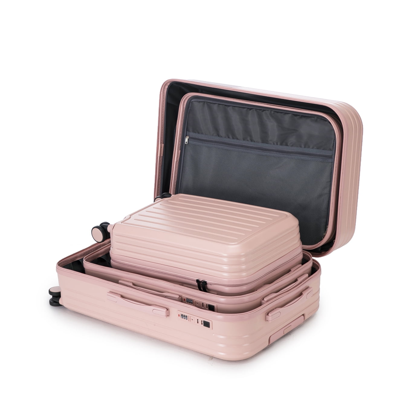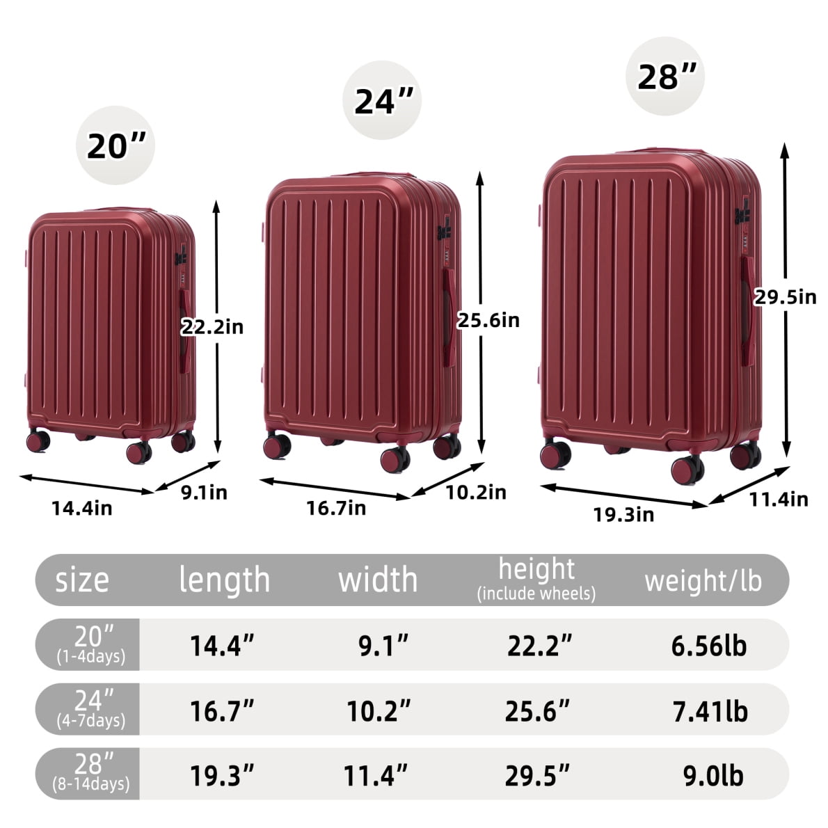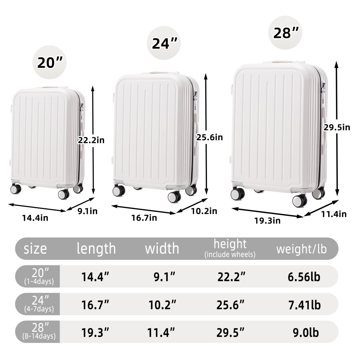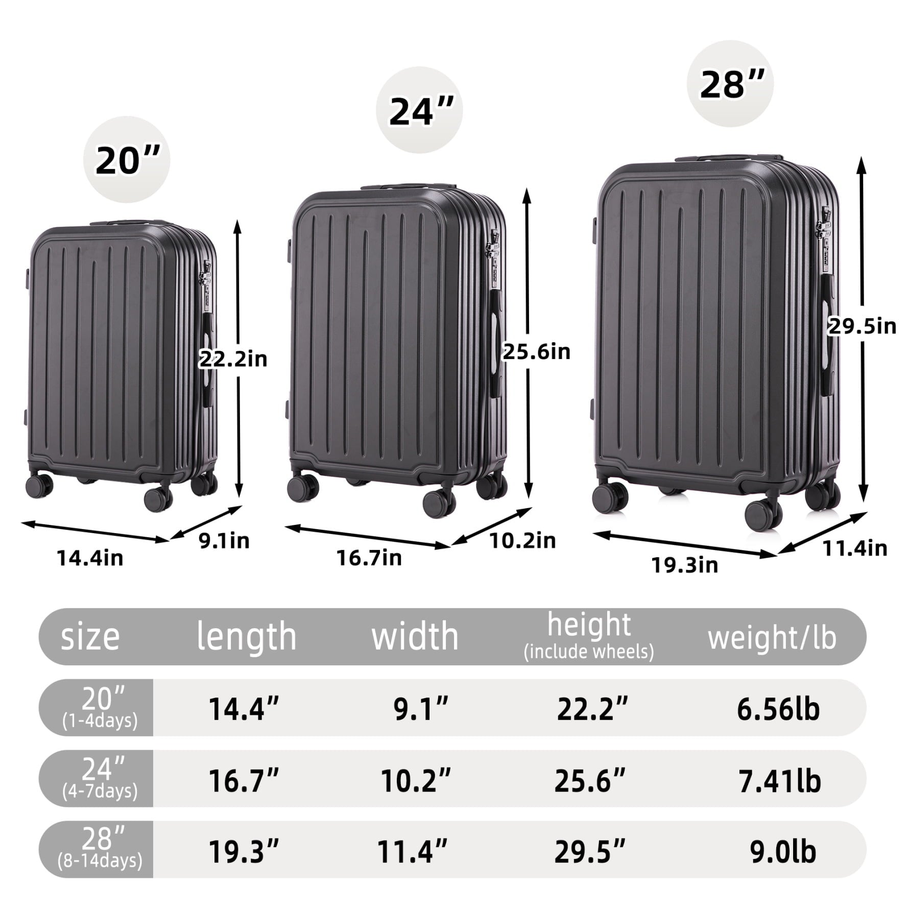 - Waterproof ABS hardshell construction protects belongings from spills and rain, featuring scratch-resistant vertical stripes that maintain appearance through rough handling – travel confidently knowing your luggage stays pristine mile after mile.