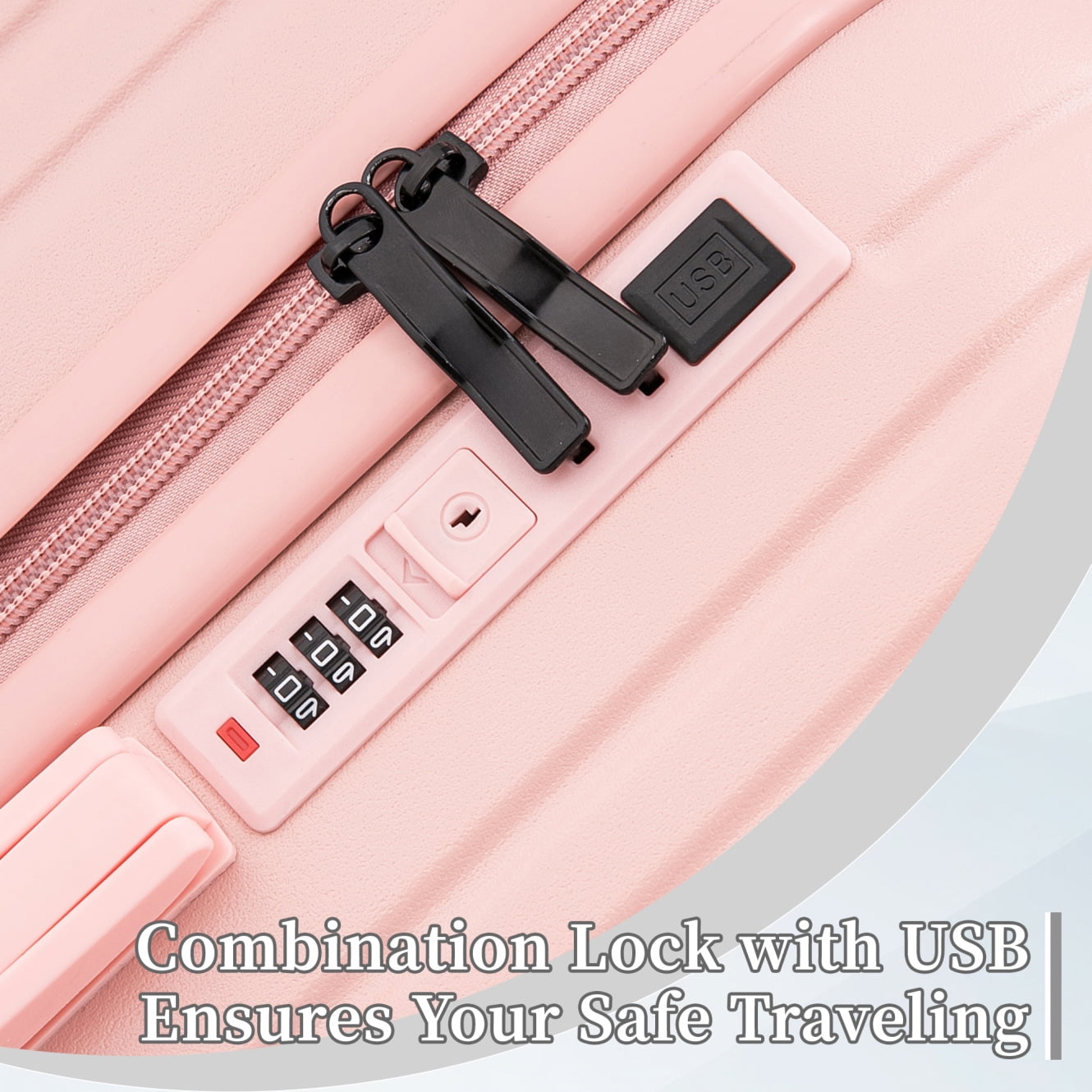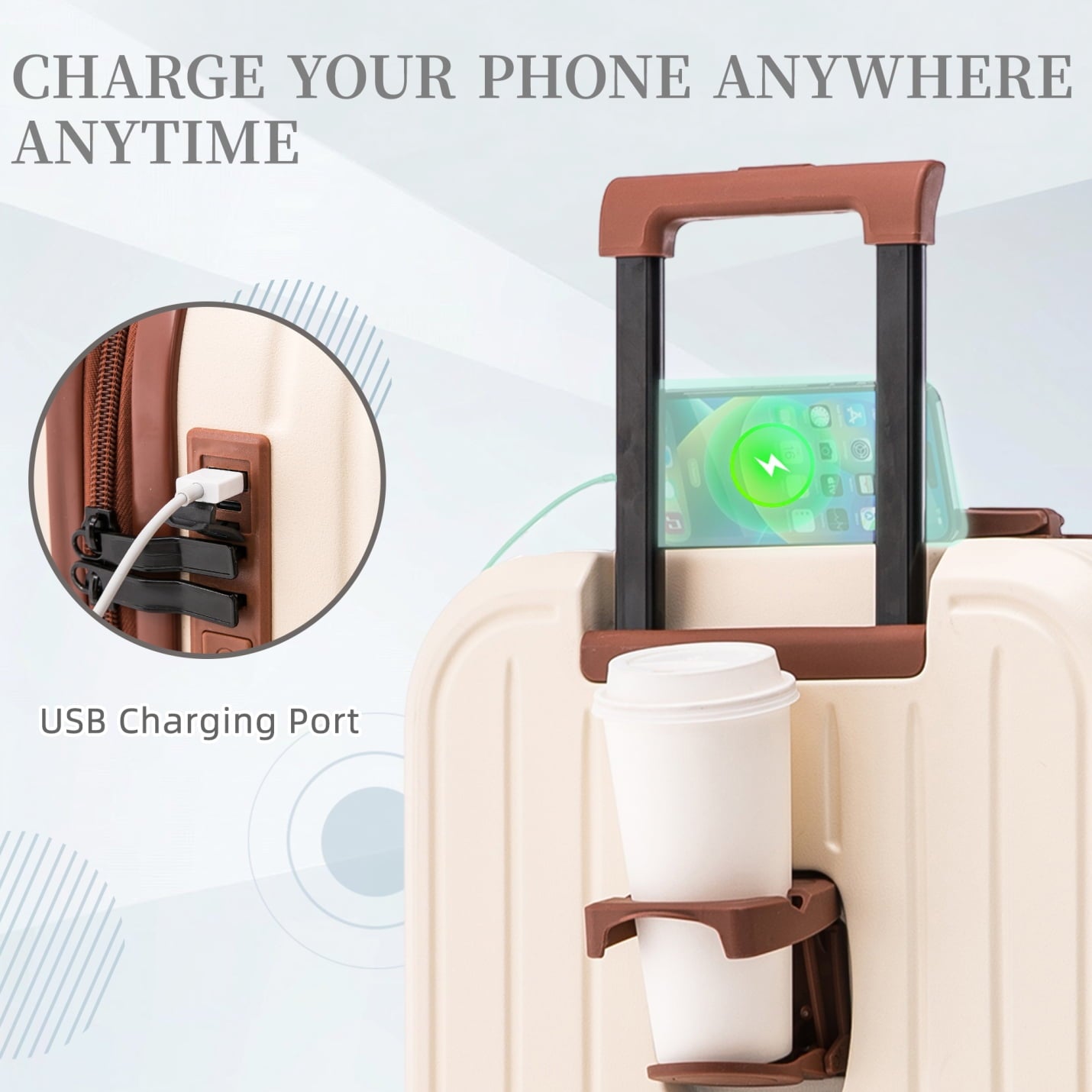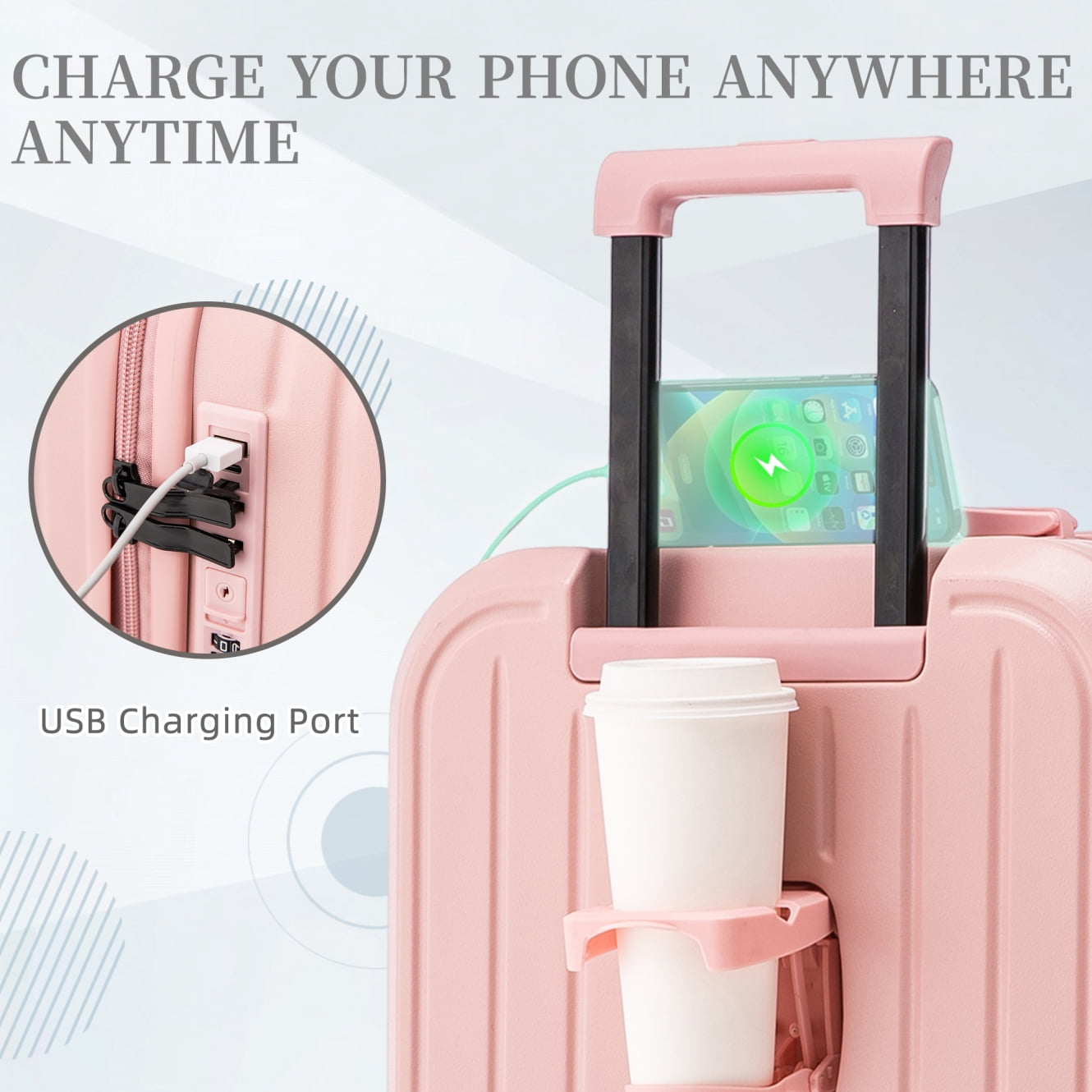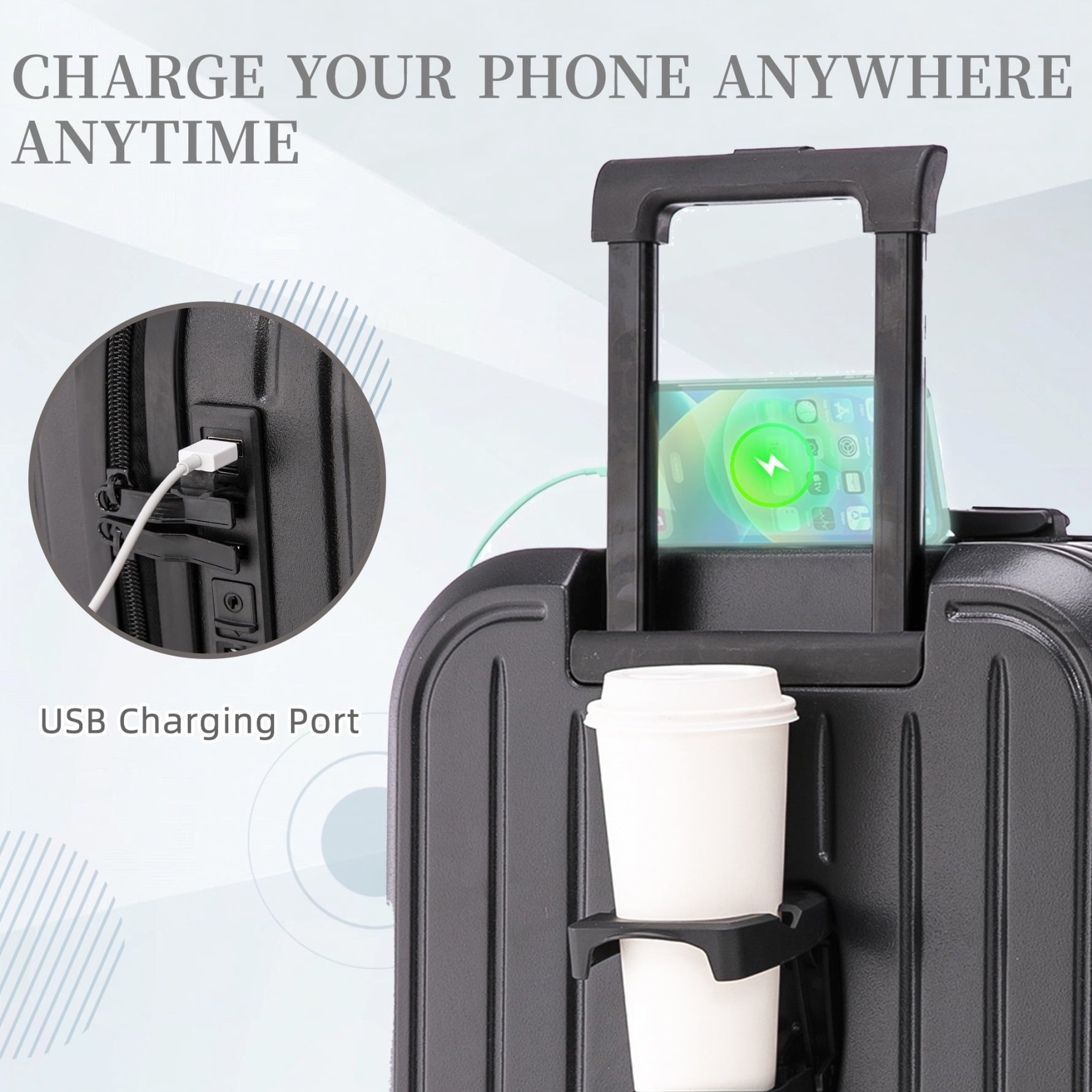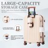 Travel with ease and style using this 20/24/28-inch ABS hardshell spinner luggage, designed to elevate your journey. Its waterproof ABS exterior ensures durability and effortless cleaning, while the 360-degree spinner wheels provide smooth mobility across airports, hotels, or uneven terrain. The built-in USB charging port keeps your devices powered on the go, and the convenient cup holder adds practicality to your travel routine. With a 3-step adjustable telescopic handle, this lightweight carry-on suitcase adapts to users of all heights for comfortable maneuvering.