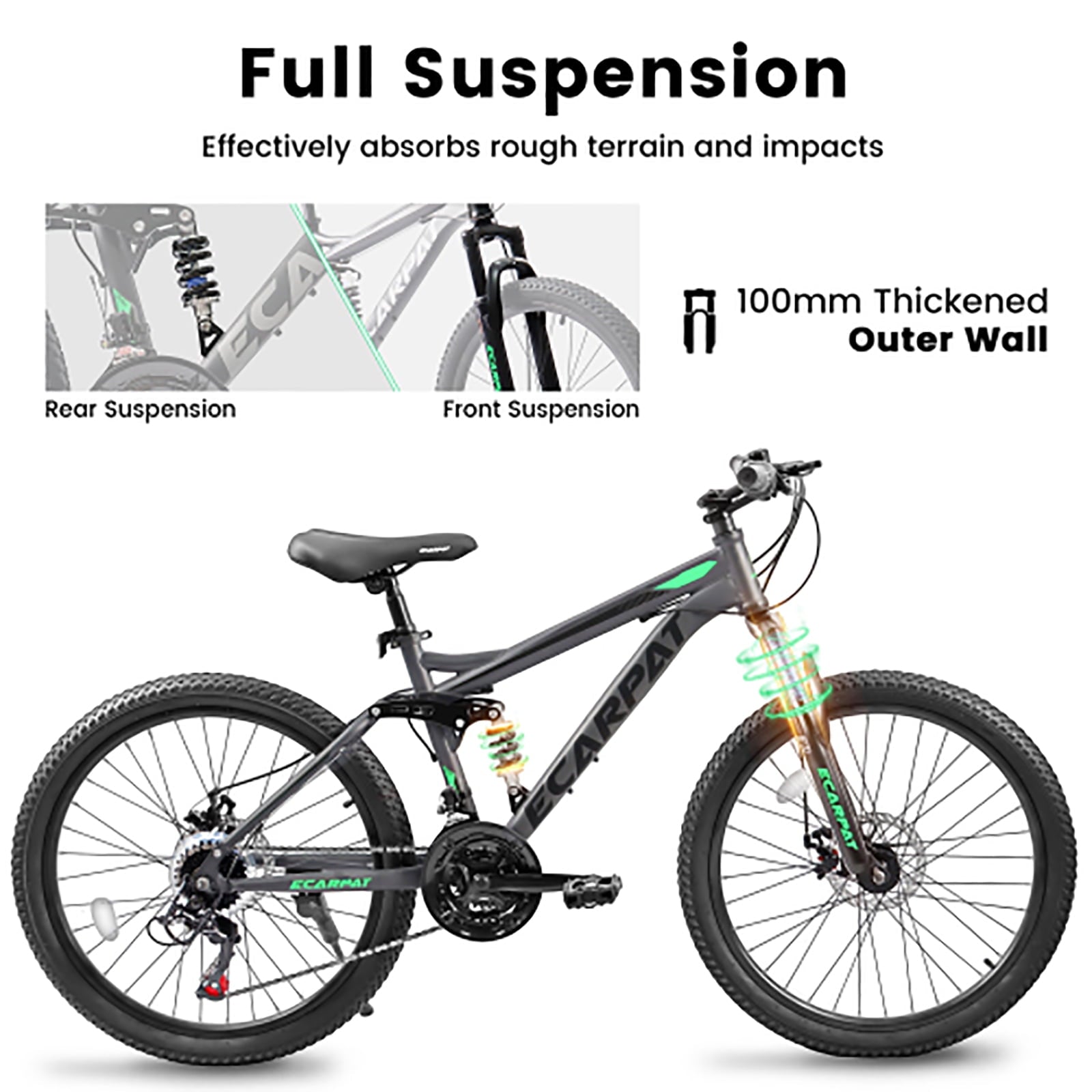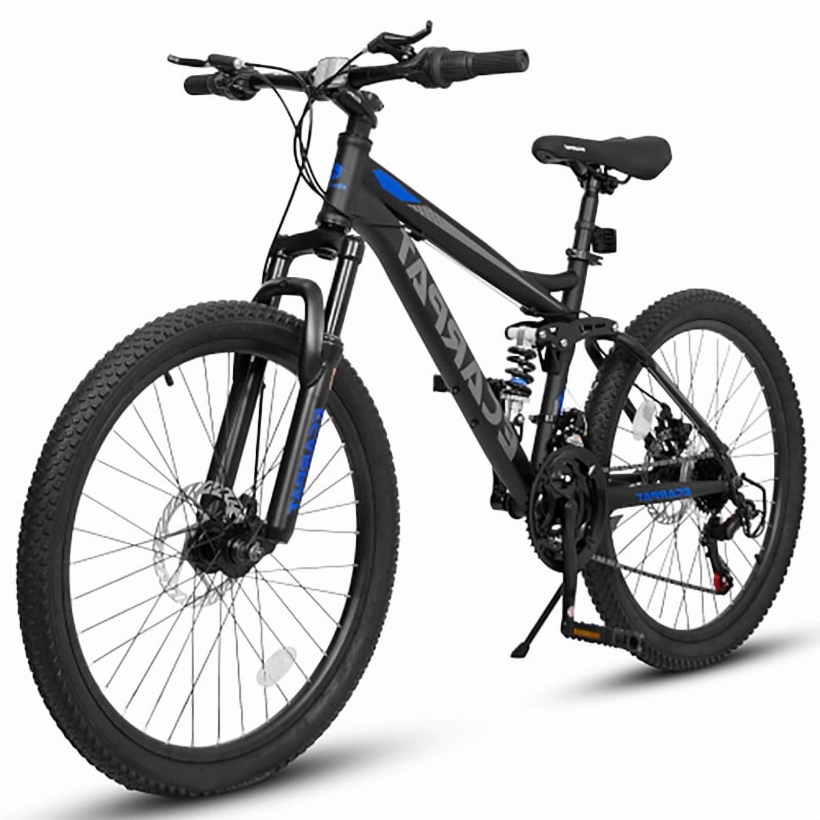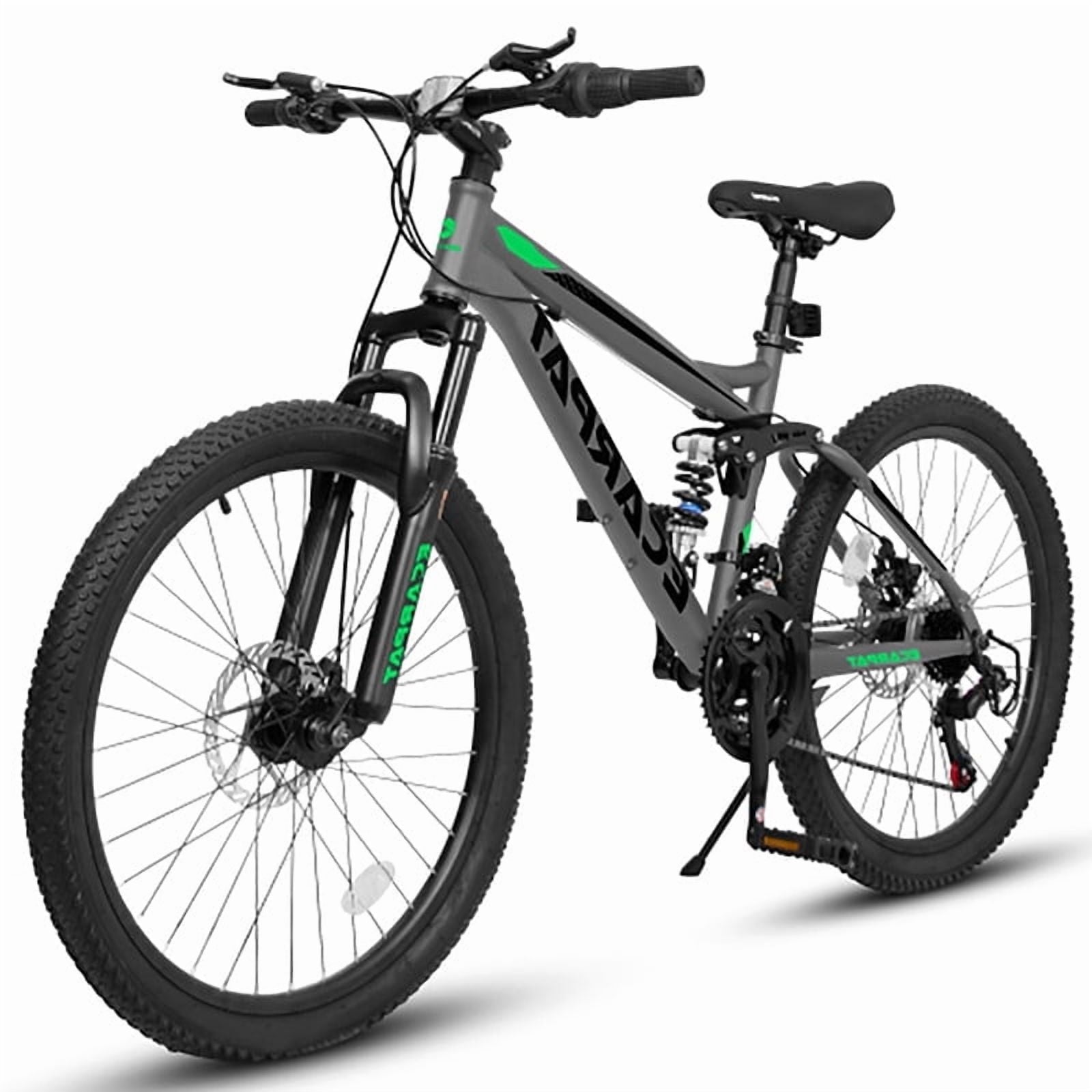 24″ Mountain Bike, Full Suspension, 21-Speed Grip Shifters, High Carbon Steel Frame, Mechanical Disc Brakes, Unisex, Great for Off-Road.