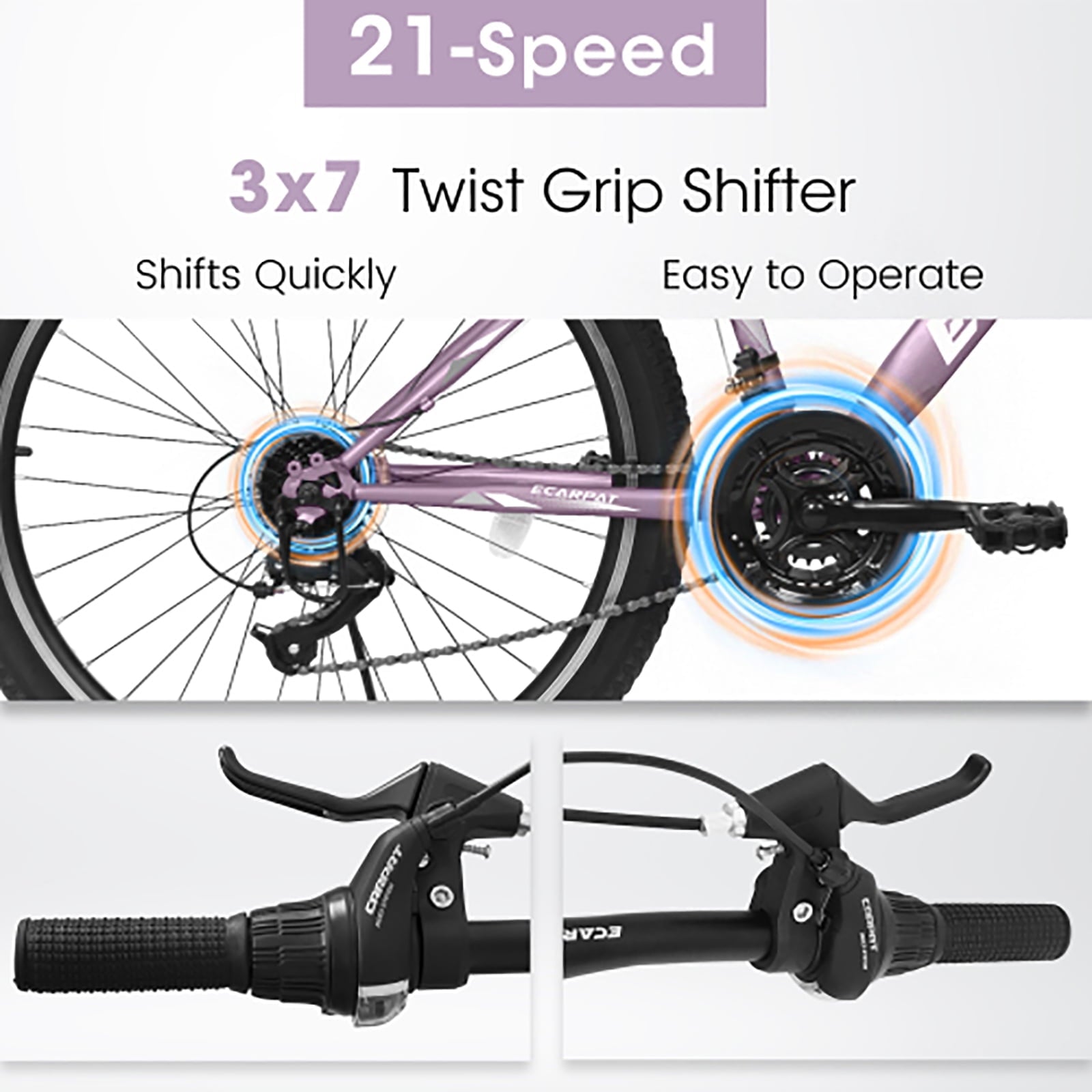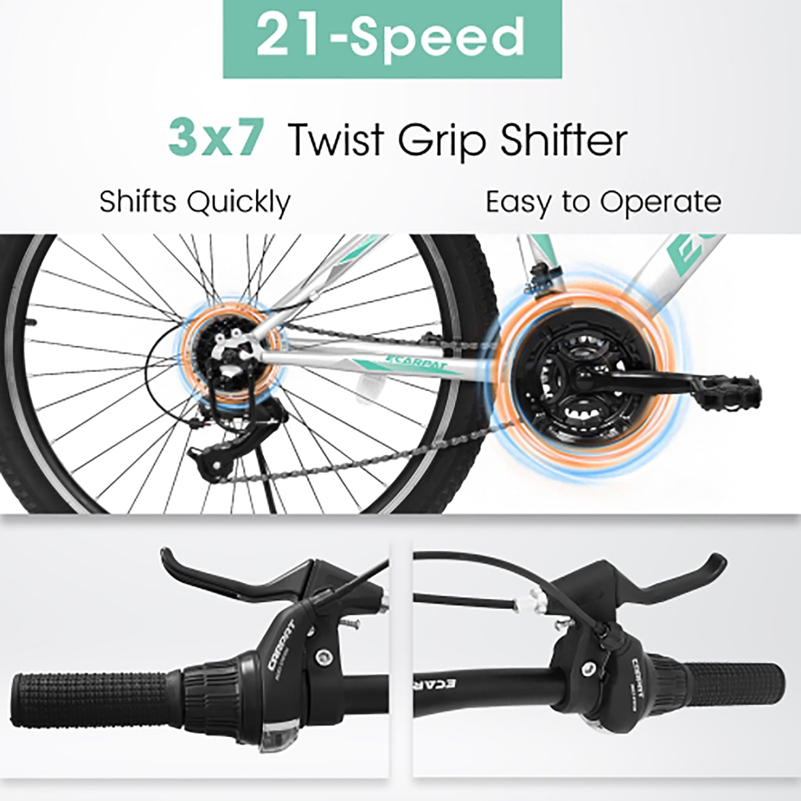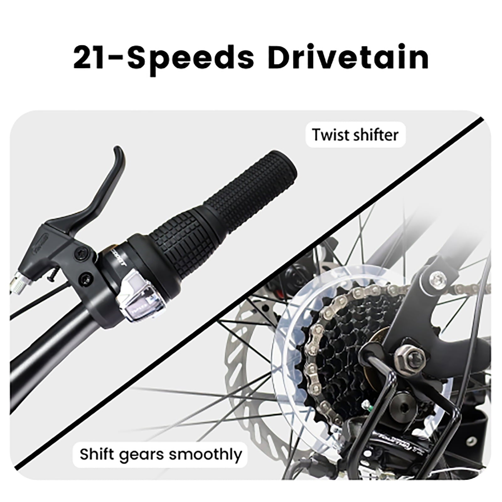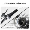 - 【 Efficient 21-Speed Gear System】The 21-speed gear system allows riders to easily adjust speed based on different terrains and needs, enhancing the overall riding experience.