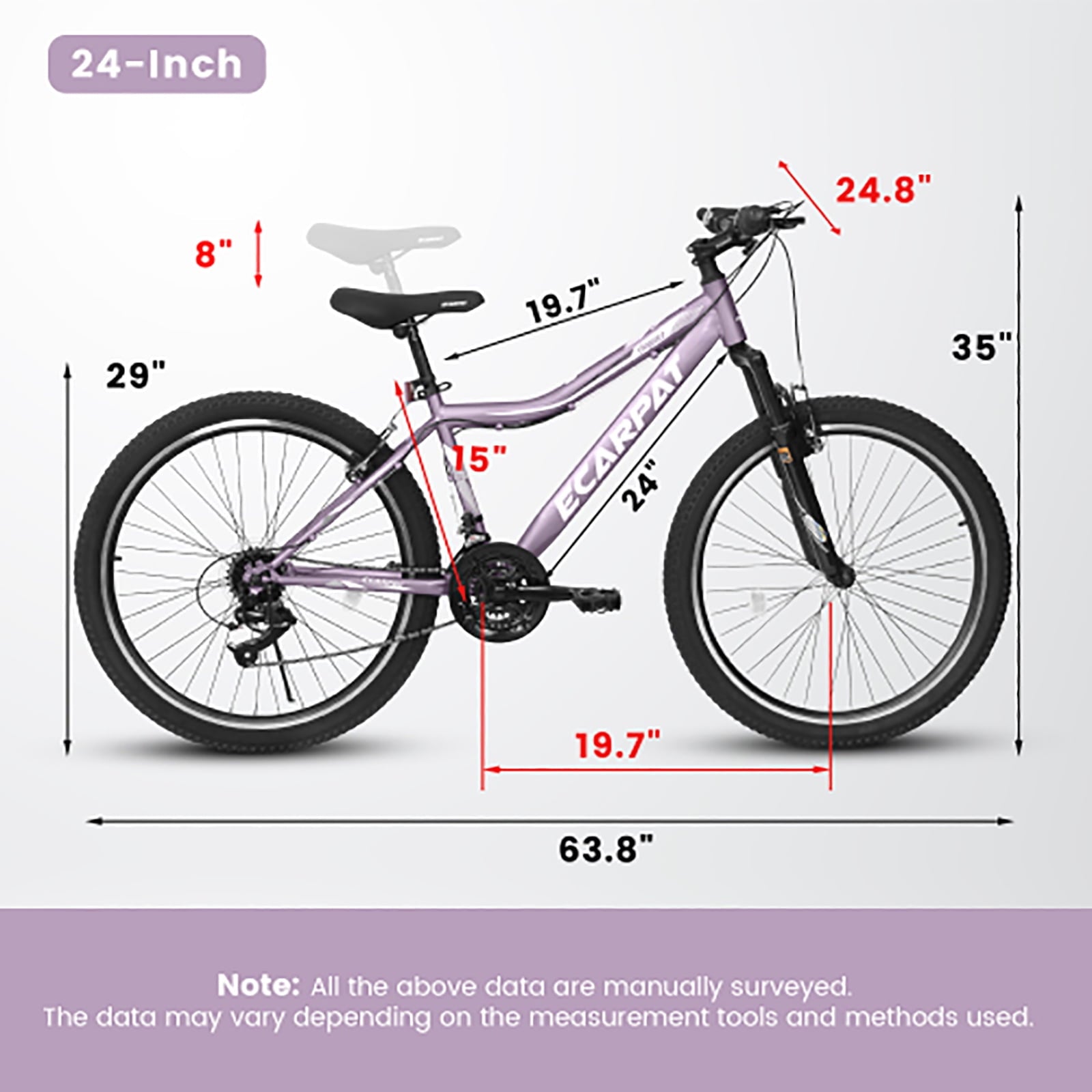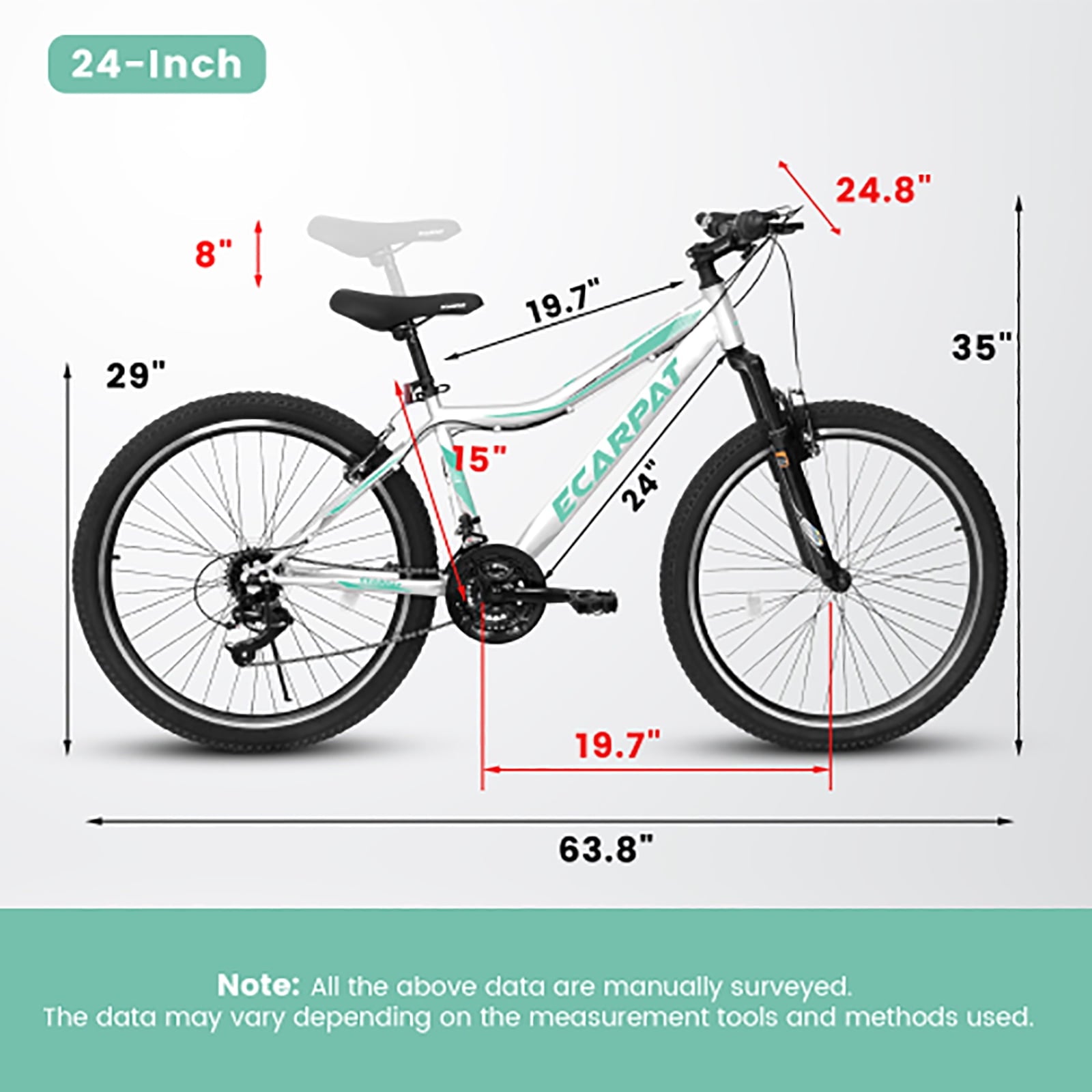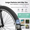 - 【ALL-TERRAIN TIRES】Featuring 24×2.125-inch all-terrain wear tires made of high quality rubber with a complex pattern design, which makes the tires grip stronger and reduces skidding. Suitable for city roads, gravel roads, mountains, beaches and other terrains.