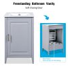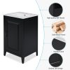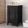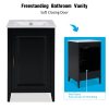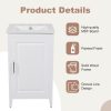 The cabinet features a door-mounted shelf and functional drawer with slide rails for easy access. The back-open design simplifies plumbing connections during installation. All mounting hardware and instructions are included for two-person assembly in about 30 minutes. Crafted with high-quality materials, this vanity provides a seamless combination of practical storage and modern aesthetics for small bathrooms or powder rooms.