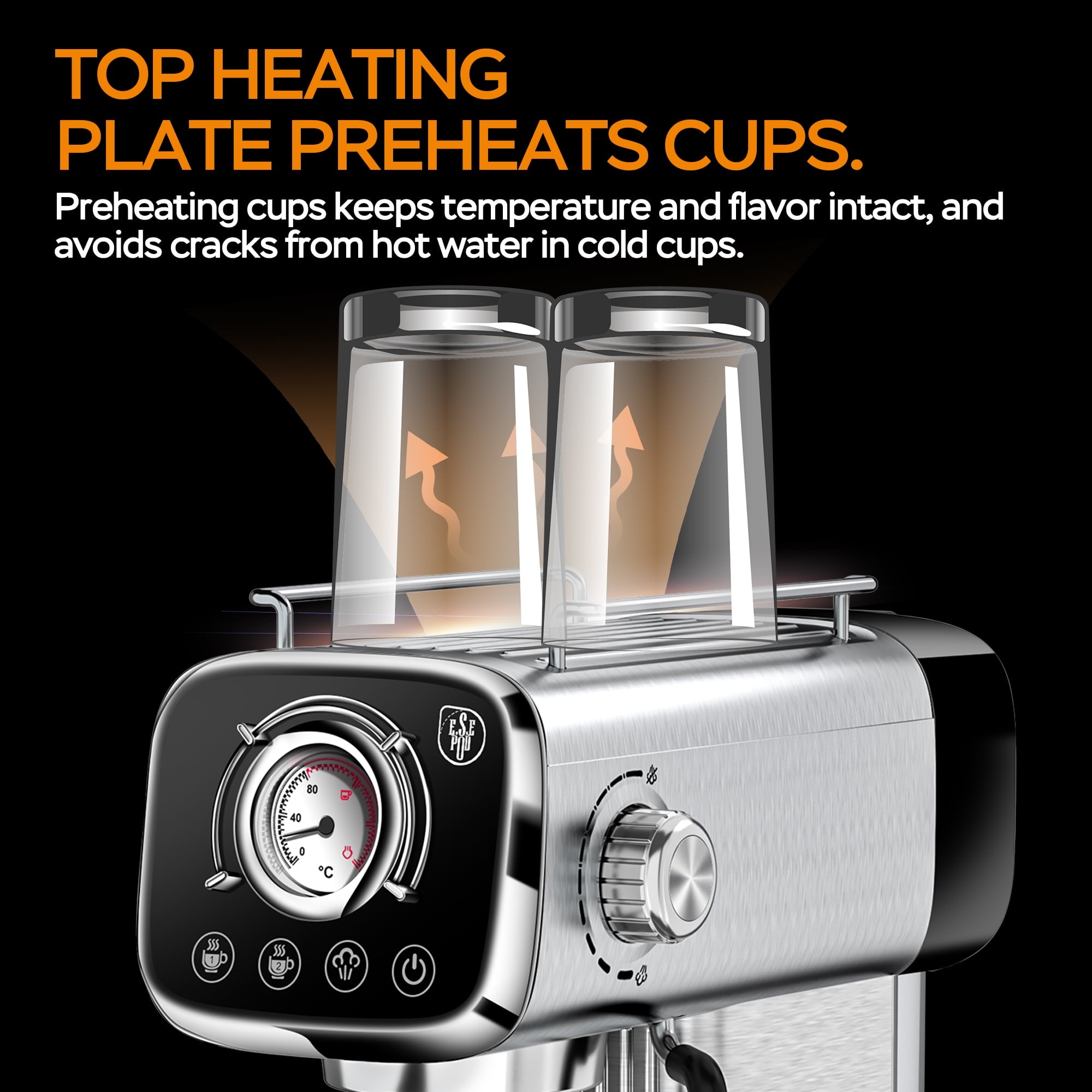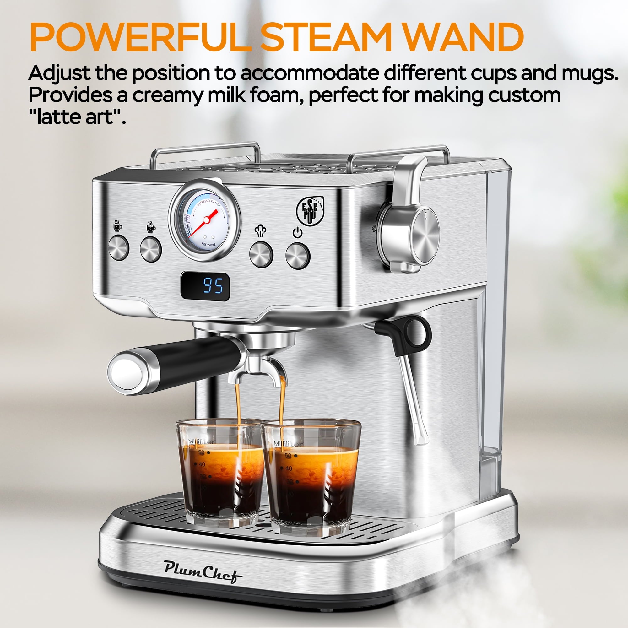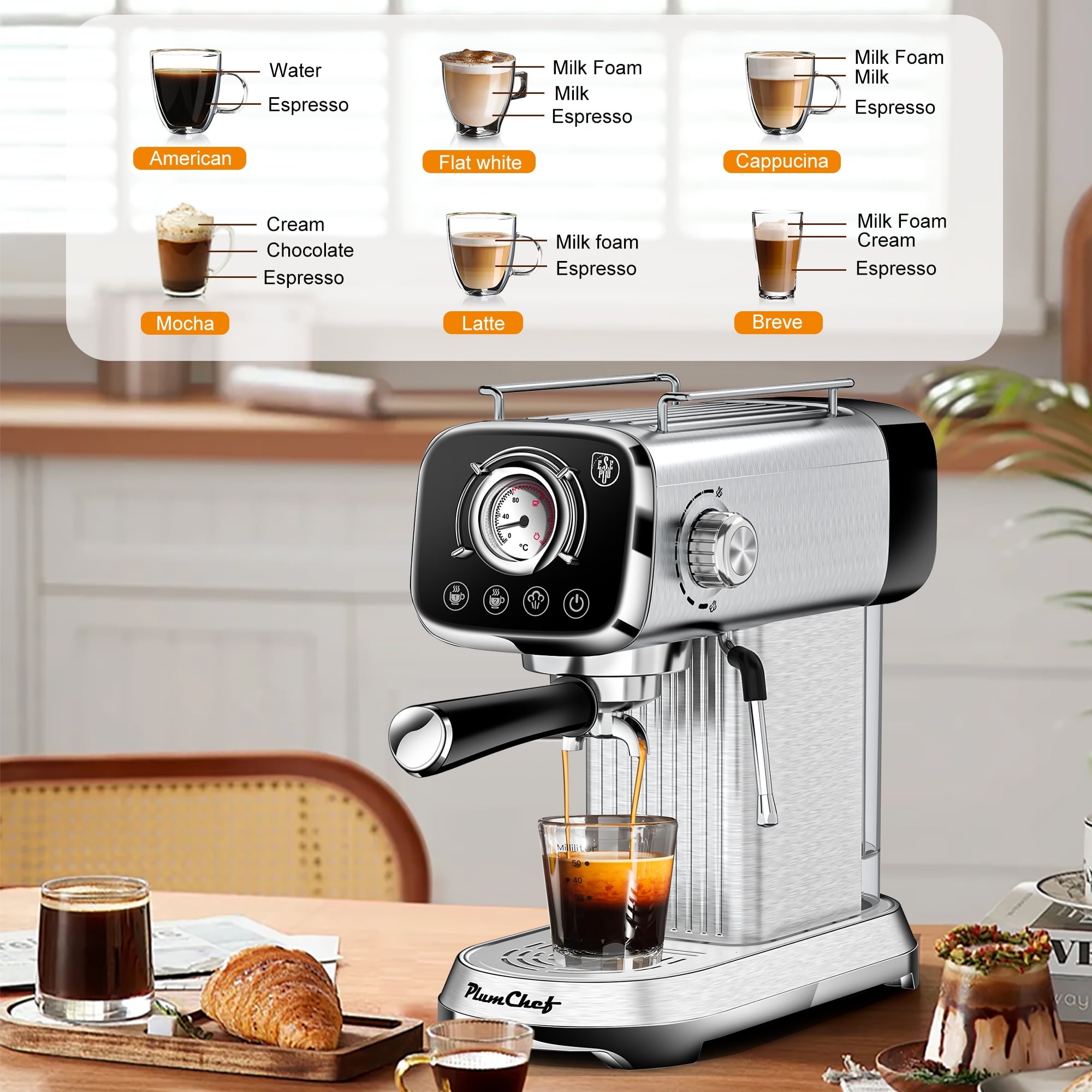 • Stylish and Durable Construction: This espresso machine features a modern design with a robust stainless steel build, ensuring durability and a sleek look that complements any kitchen decor.