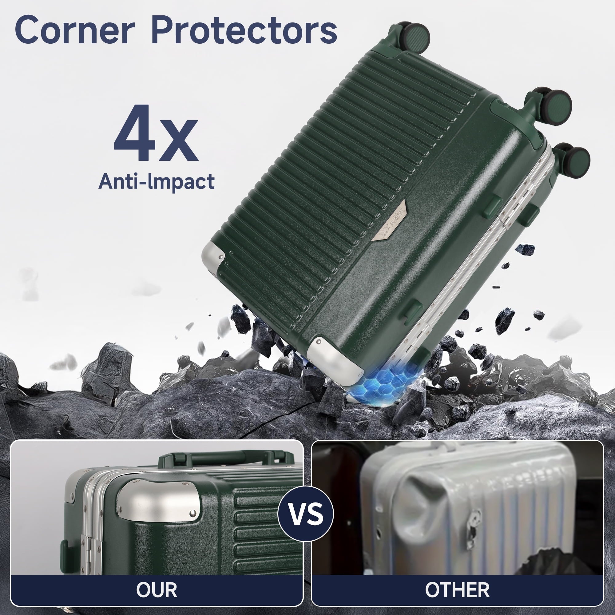 • 【X4 Corner Protectors】This hardside suitcase features four aluminum corner protectors that reinforce the case, resist impacts and abrasion, providing sturdy protection.