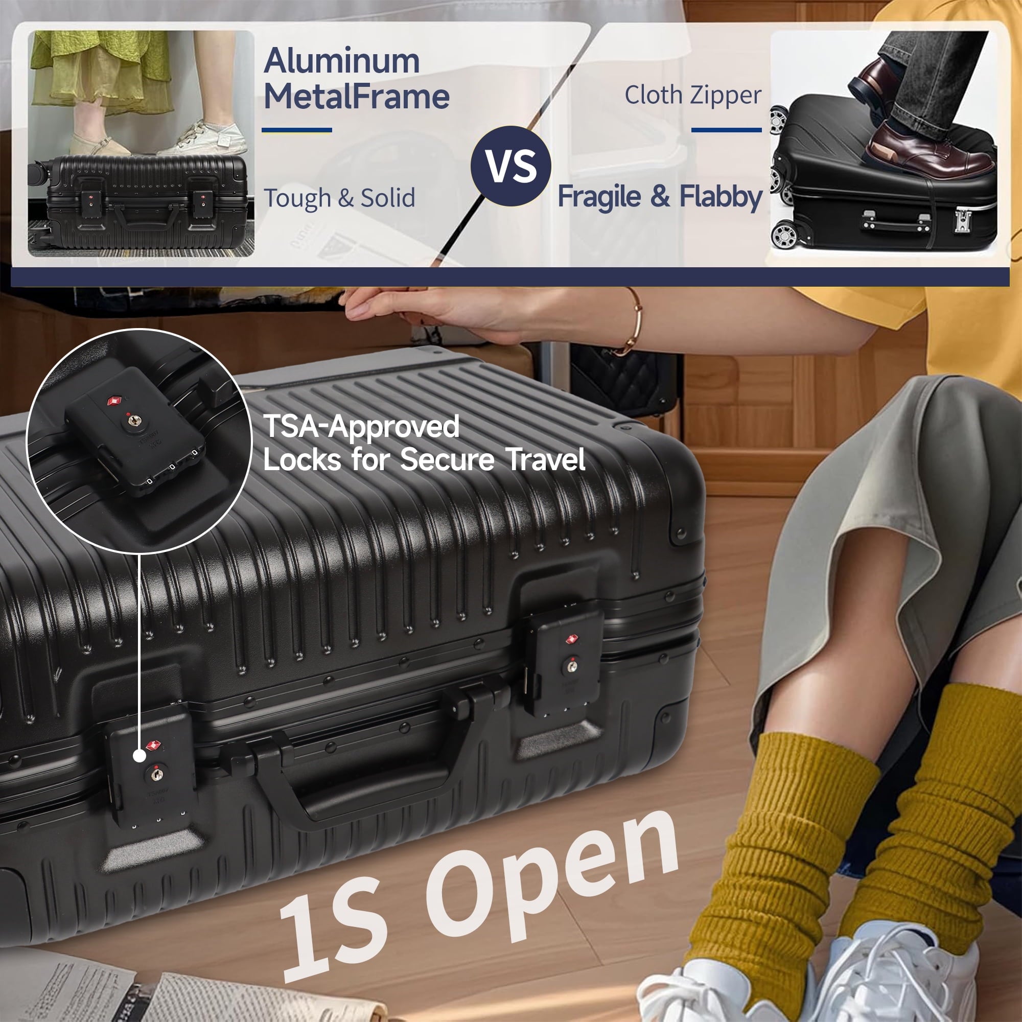 • 【Upgraded TSA Locks】This carry-on features two TSA-approved locks with a quick one-press, zipperless design, ensuring your belongings stay secure.