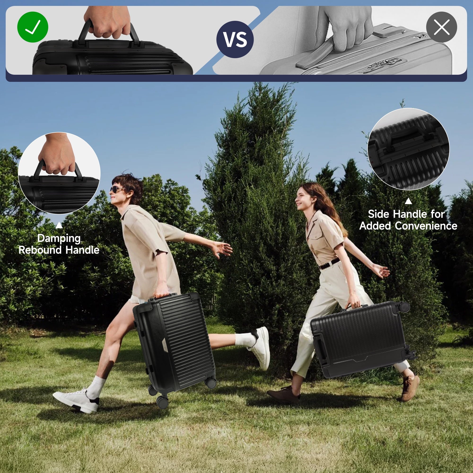 • 【Easy Travel】The zipperless luggage features 360° silent spinner wheels and an adjustable telescopic handle, enhancing your travel experience.