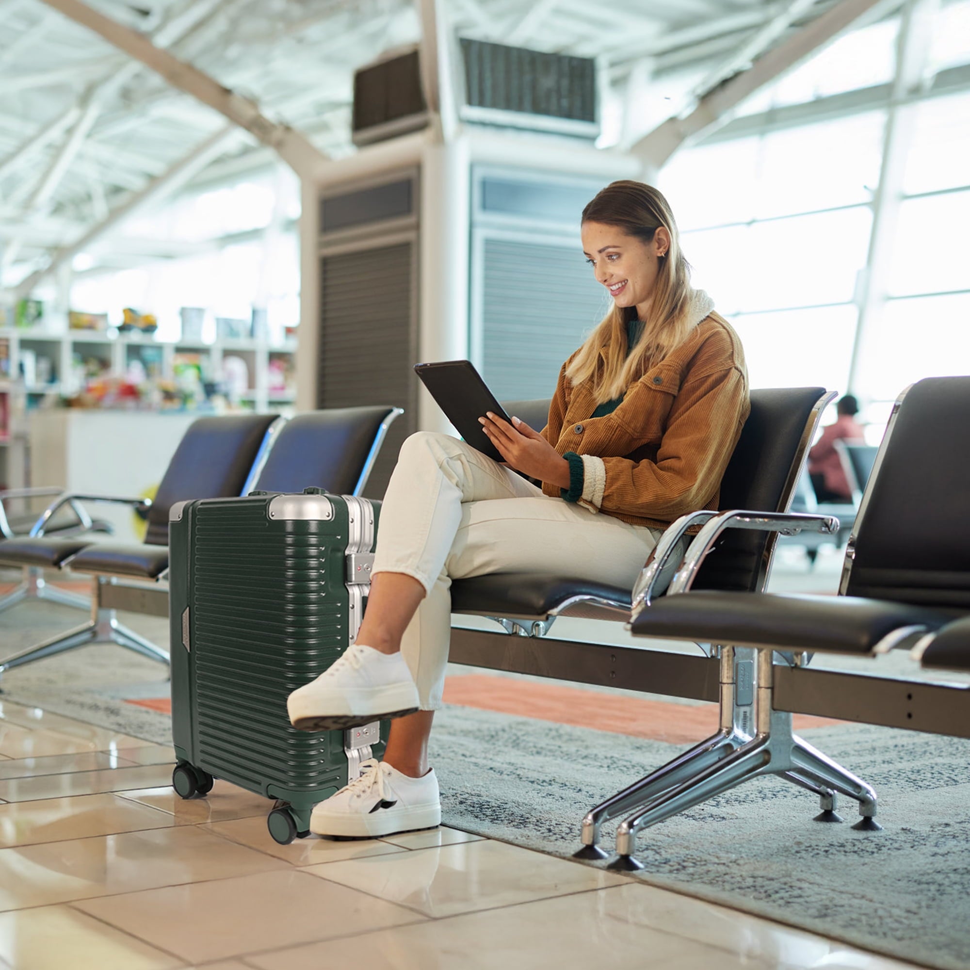 20″ Carry On Luggage with Spinner Wheels & TSA Lock,Aluminum Frame Zipperless Hard Shell Suitcase, 22x14x9 Airline Approved, Green,AL1377