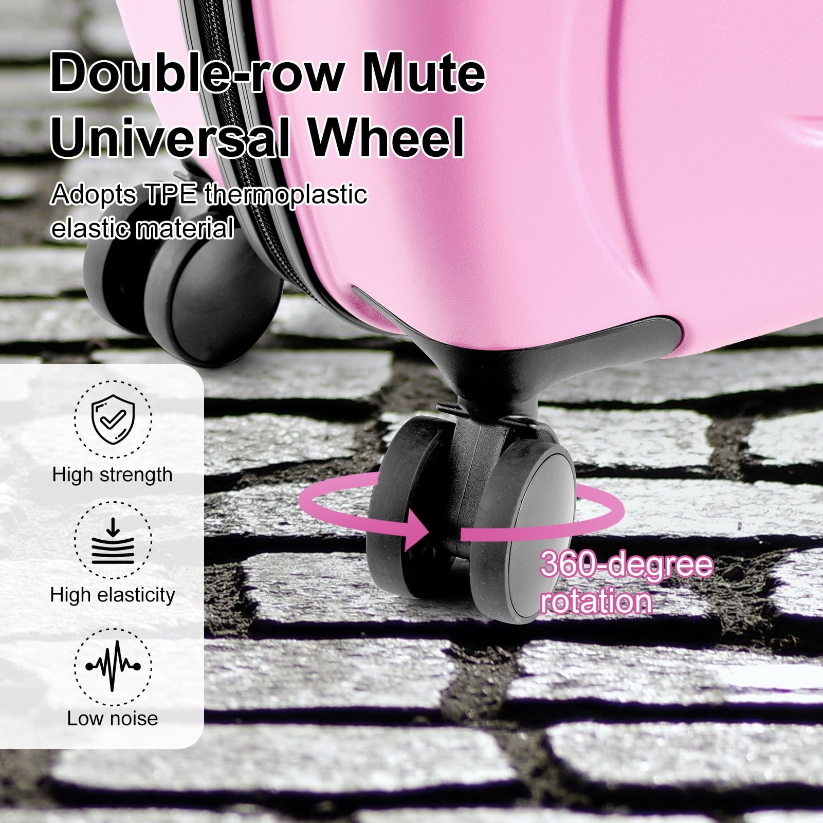 20″ Children’s Ride-On Luggage with Safety Belt Matte Finish, Silent Wheels, Spacious Compartment for Ages 3-12 travel suitcase