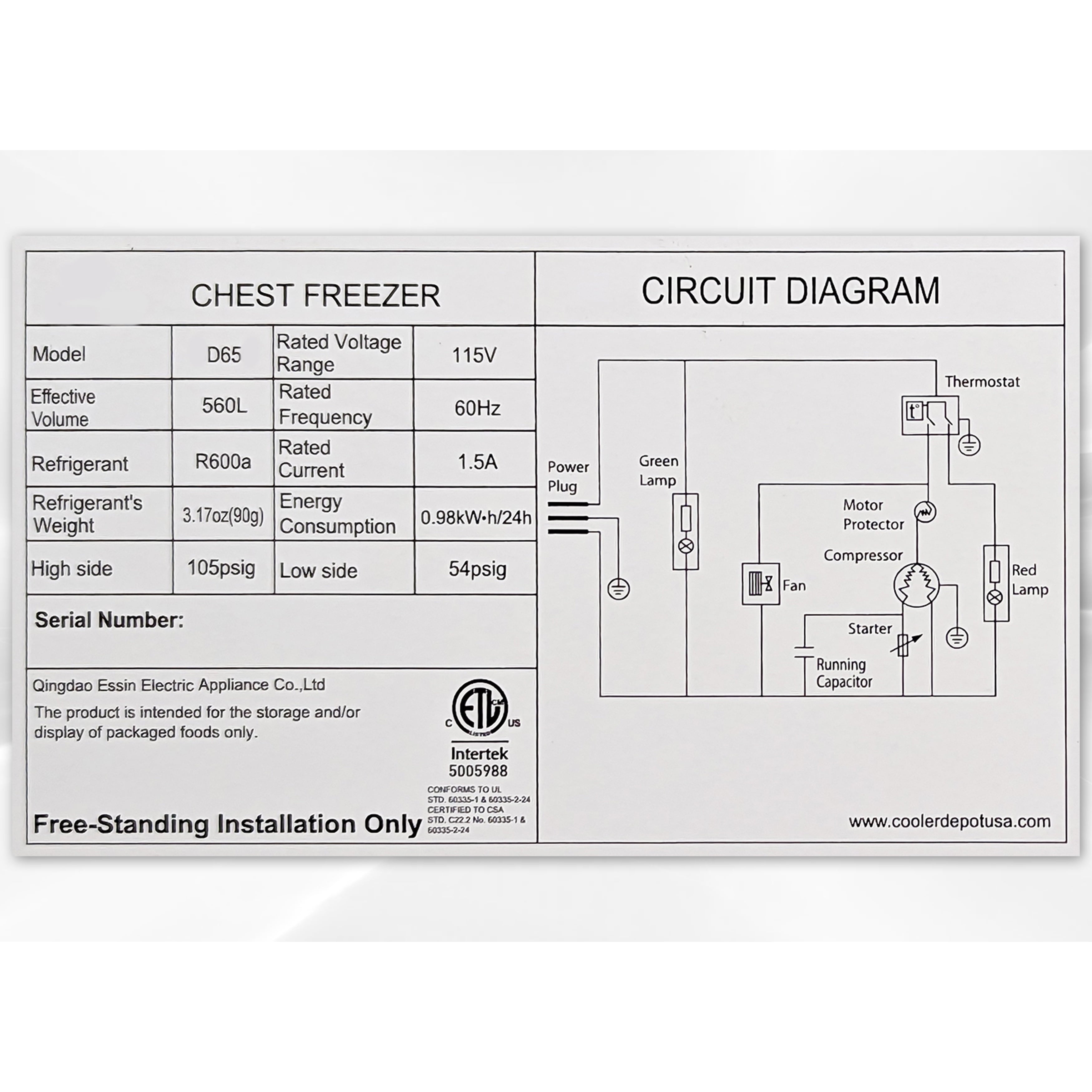 • Powered by a famous compressor and constructed with a super thick cabinet for reliable and efficient performance