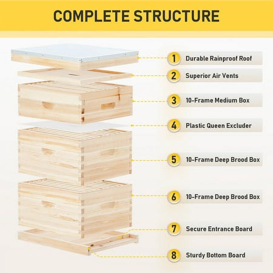 - INCLUDE EVERYTHING YOU NEED, the kit comes with everything you need to build a tight & sturdy bee hive, assembly can be completed in up to 10 minutes.