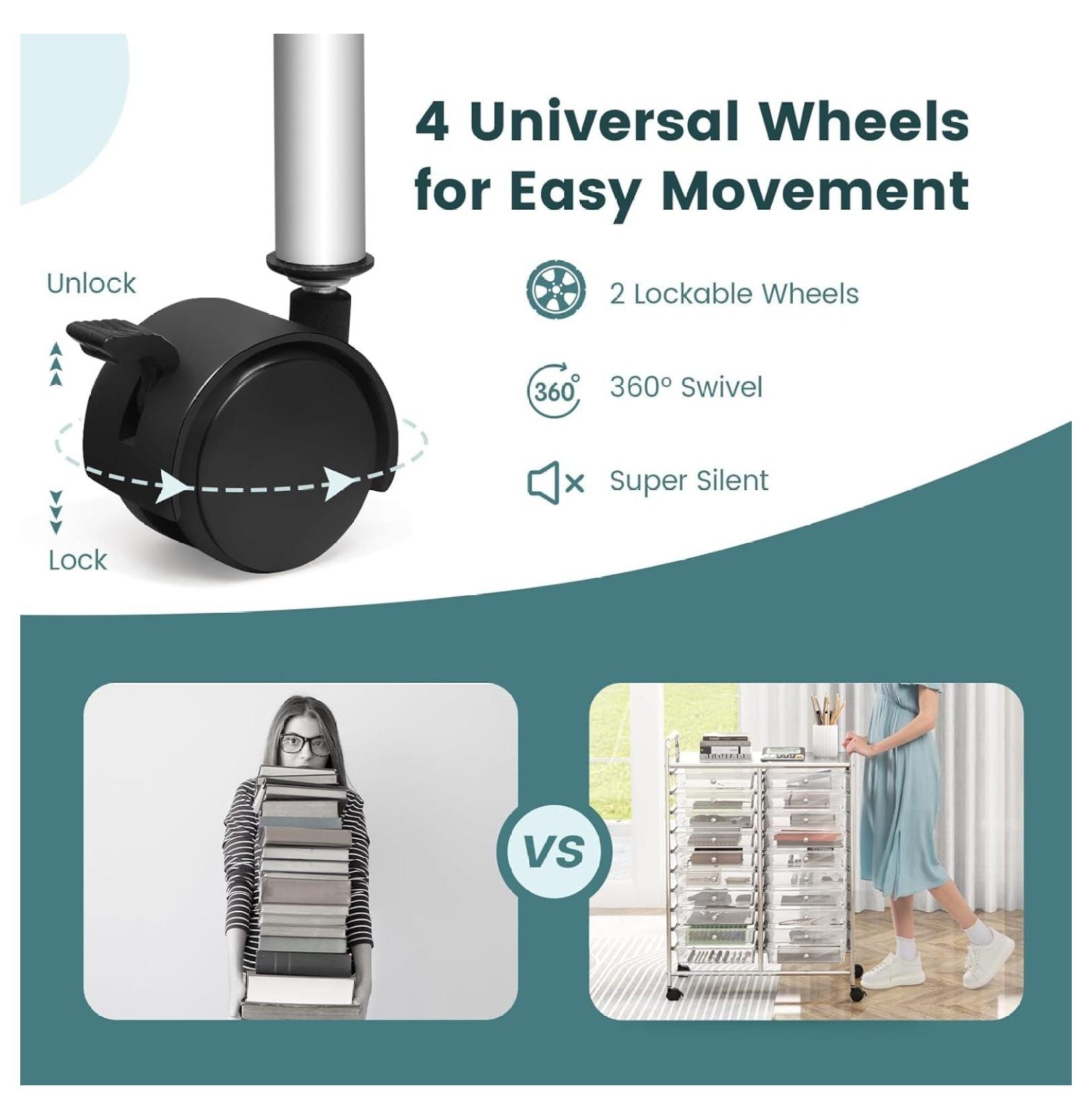 - Effortless Mobility: Designed with 4 smooth wheels which can be rotated 360 degrees, this home office storage organizer is easy to move wherever you want and avoids disturbing you and your families or friends thanks to its super quiet moving. And 2 lockable wheels offer great convenience.