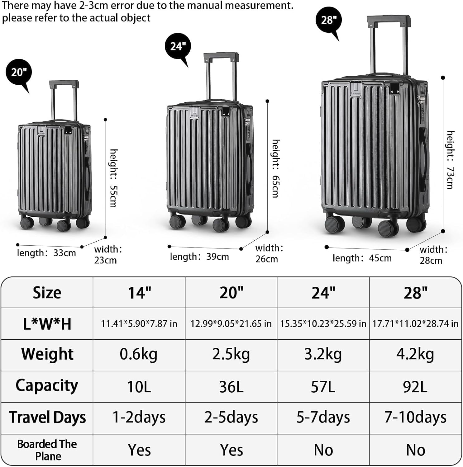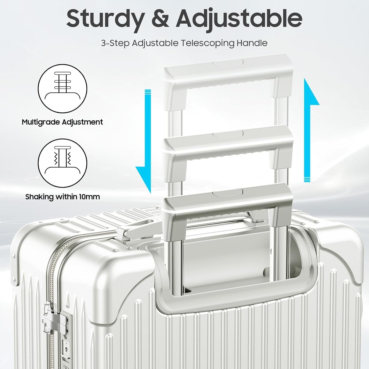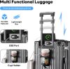 【Adjustable Telescopic handle carryon】Hardside Suitcase with Smart Luggage, With adjustable multi level telescopic pull rod, it conforms to ergonomics and adapts to different height requirements,making your journey more effortless