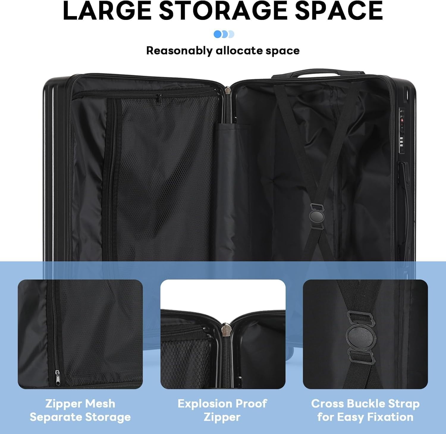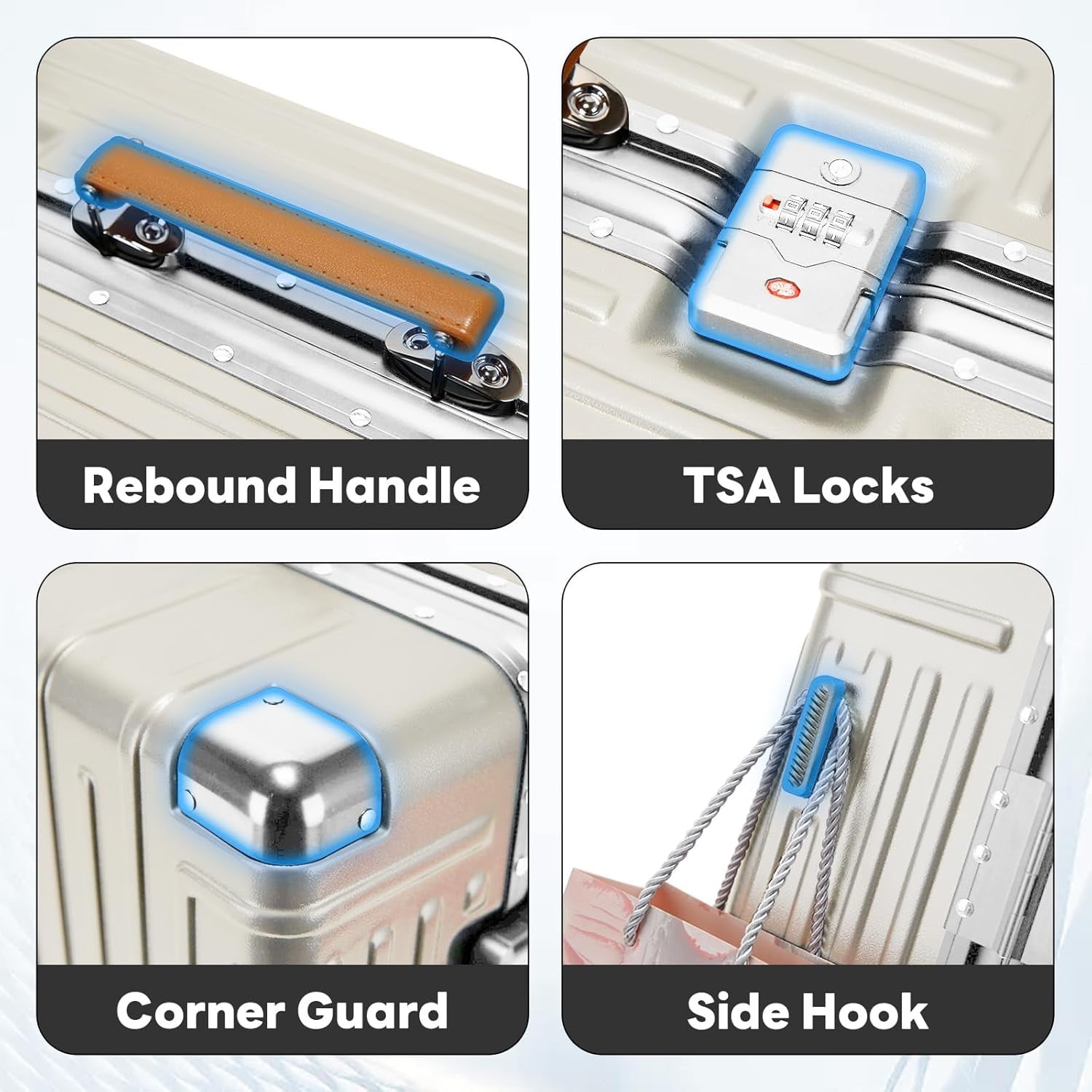 【360° Silent Double Spinner Wheels】This rolling carry on luggage includes 8 rotating wheels, which can provide you with smooth and comfortable 360 degree movement, Equipped With 8 Spinner Wheels That can Rotate 360°, carryon Moves Freely and Reduces Noise. making it more effortless and comfortable