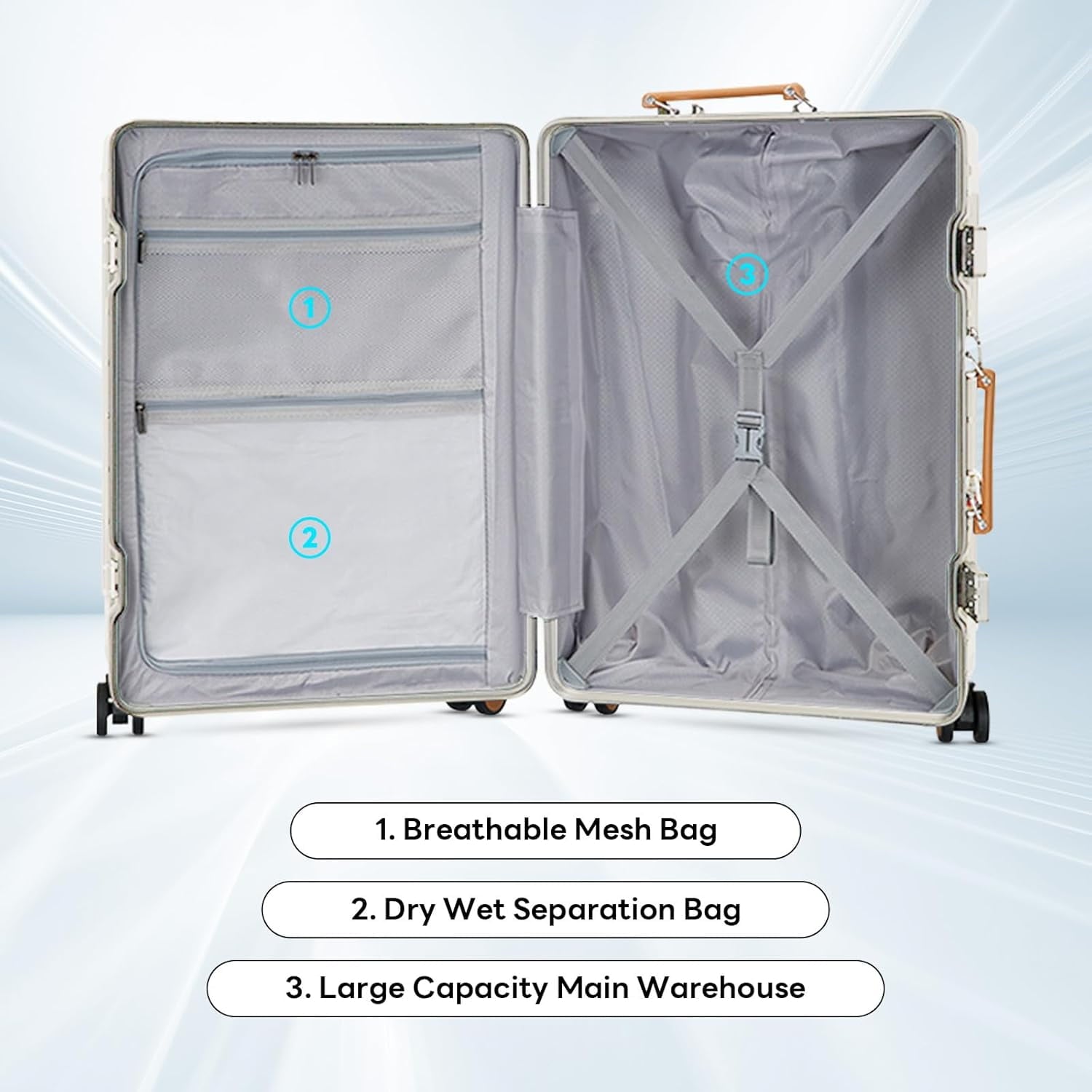 【luggage with TSA Lock】20 inch carry on luggage Equipped with a TSA approved password lock, ensures your belongings receive protection, carryon luggage 22 x 14 x 9 airline approved, allowing TSA agents to open & inspect the luggage without damaging