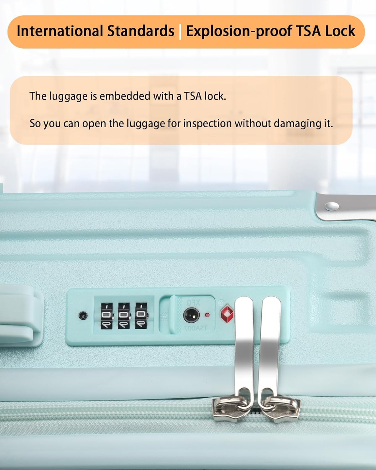 【TSA Lock & 360° silent spinner Wheel】Mounted TSA LOCKS extremly improved the safety,TSA secure and practical, this lock provides added security while complying with airport security regulations, allowing tsa agents to inspect your luggage without causing damage; 4 multi-directional spinner wheels made the luggage smooth rolling effortless mobility,can reduce noise easily.