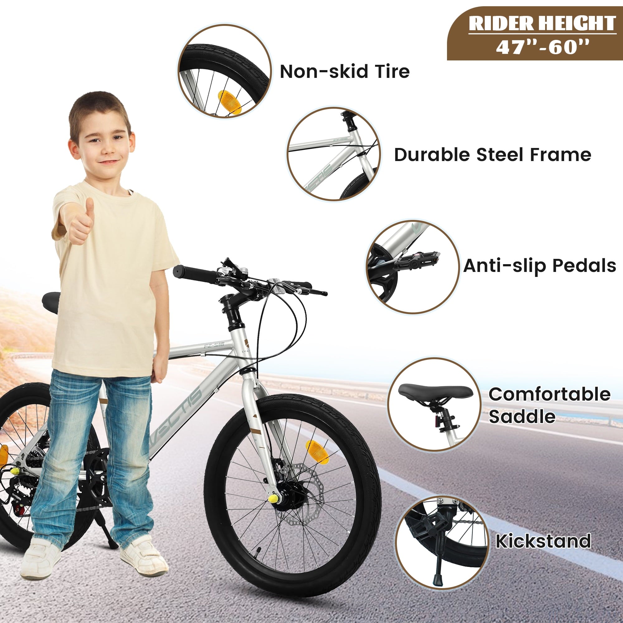 Give your kid cyclist the thrill of speed and control with this high-performance 20-inch kids’ road bike, designed specifically for boys and girls aged 6 to 12. Whether they’re exploring trails, or cruising around the neighborhood, this bicycle combines durability, precision, and style to deliver an unforgettable riding experience.
