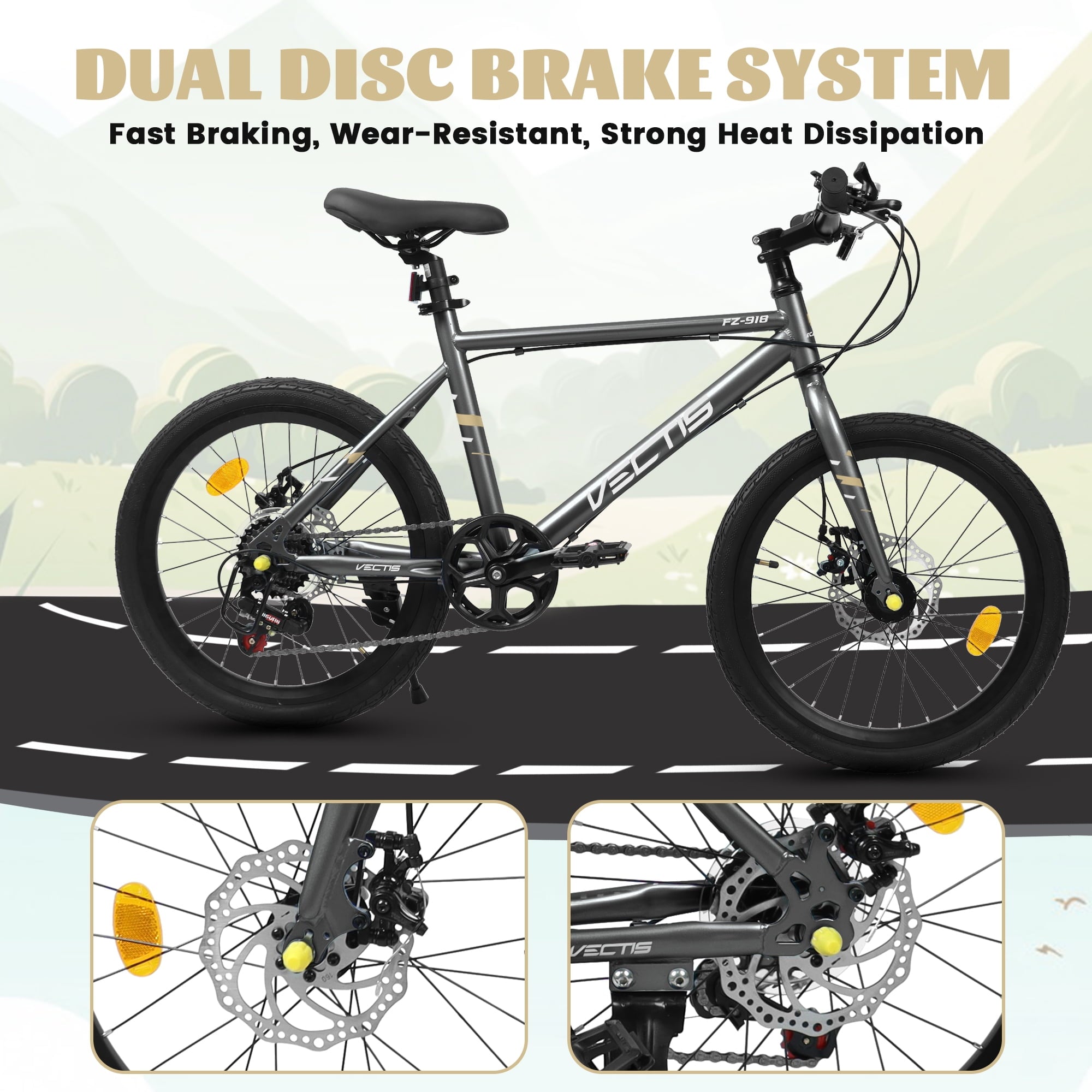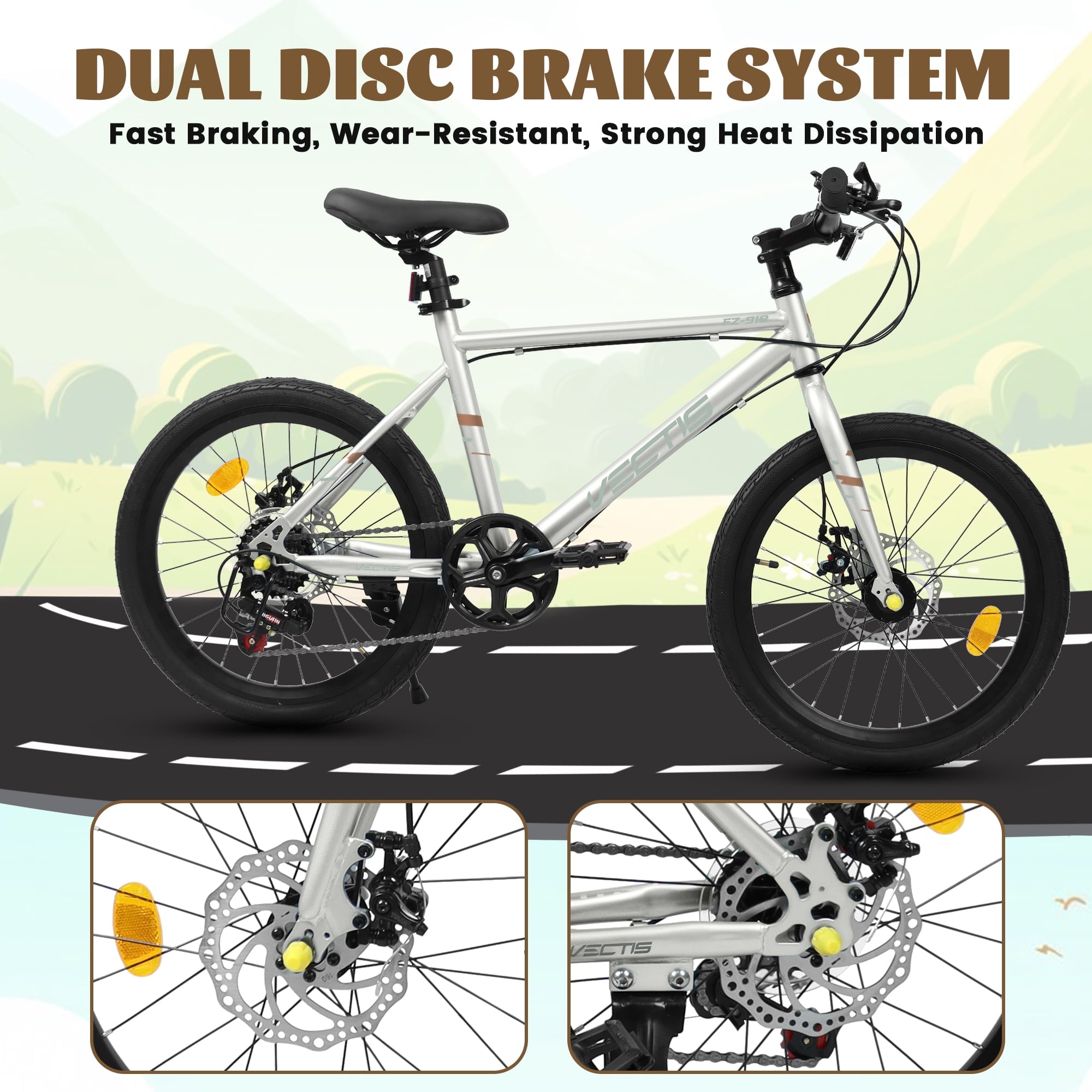 - [Dual Disc Brakes for Superior Safety & Control] Safety is prioritized with front and rear disc brakes, delivering reliable stopping power in all weather conditions. Unlike traditional rim brakes, disc brakes offer consistent performance on wet or uneven surfaces, giving parents peace of mind and kids the confidence to ride faster and farther.