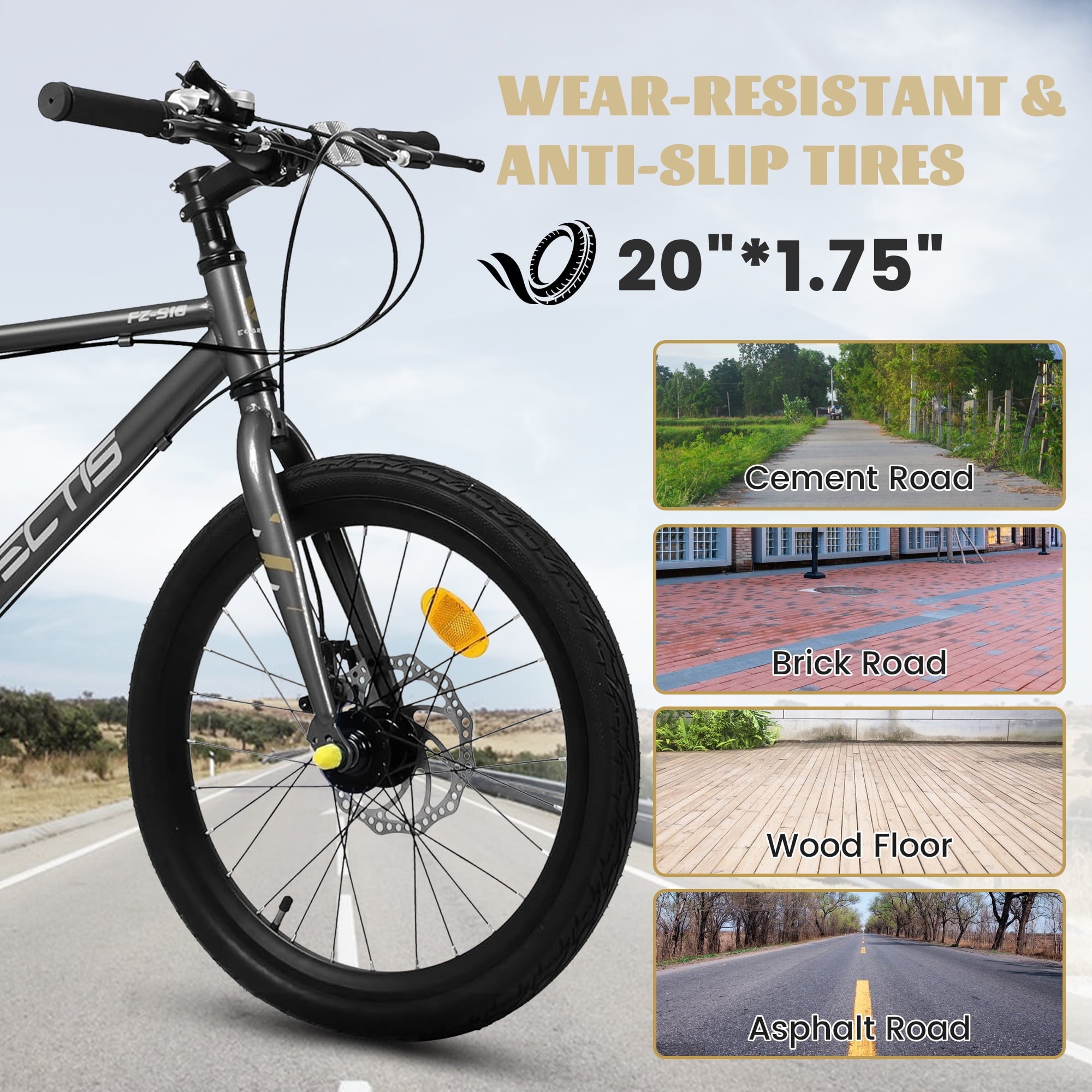 - [Road-Ready Design for Speed & Comfort] The 20×2.125 clincher tires provide excellent traction and stability, while the flat handlebars ensure a comfortable, upright riding position for extended adventures. The bike’s sleek design reduces rolling resistance, making it perfect for both casual rides and more spirited cycling.